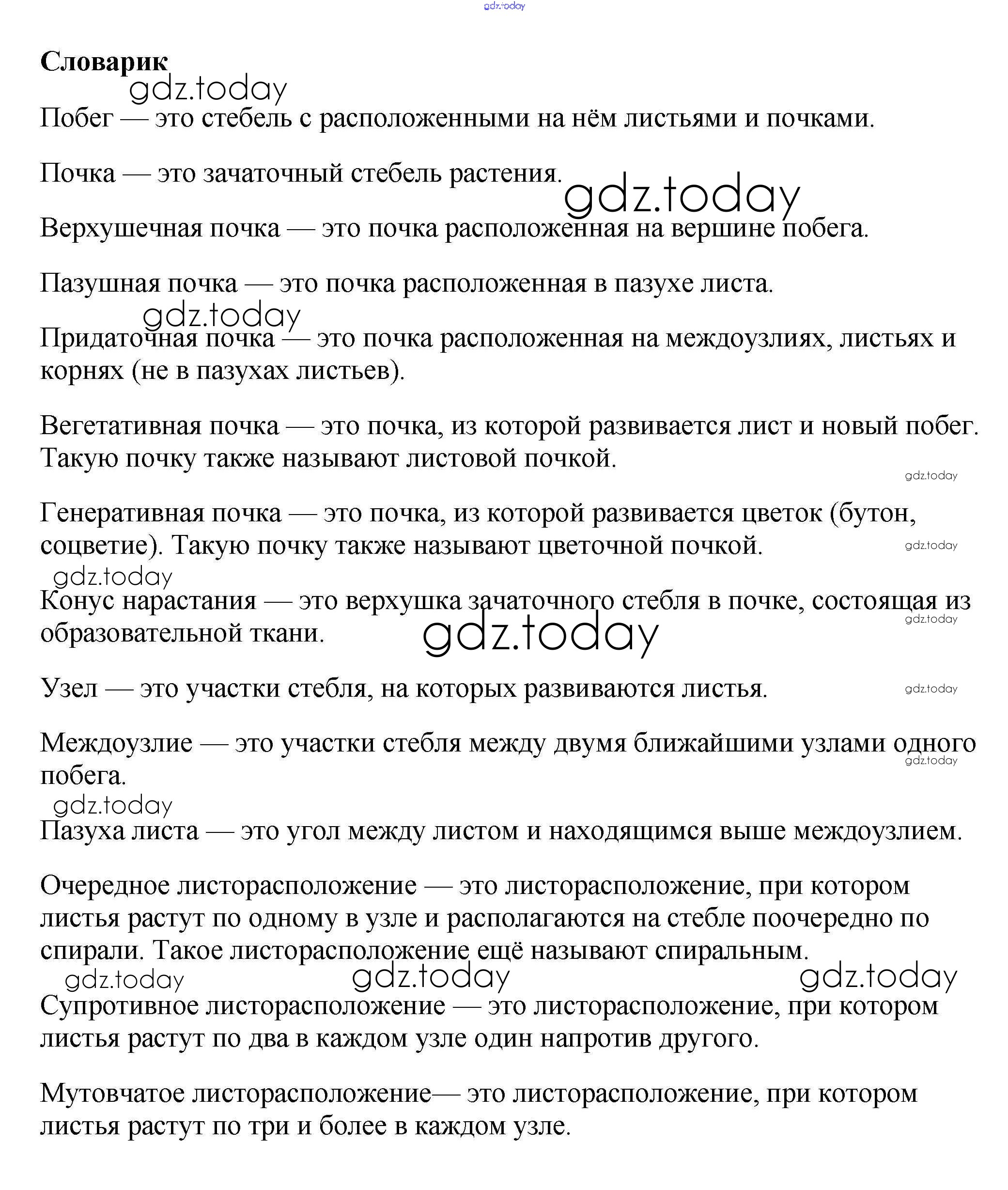 На страницах сайта gdz.today вы найдете учебный и вспомогательный материал, направленный на улучшения знаний школьной программы. ГДЗ - онлайн мир знаний Словарик Решение к §5. Побег и почки 1 Учебнику по Биологии для 6 класса Пасечник Дрофа Вертикаль 2014
