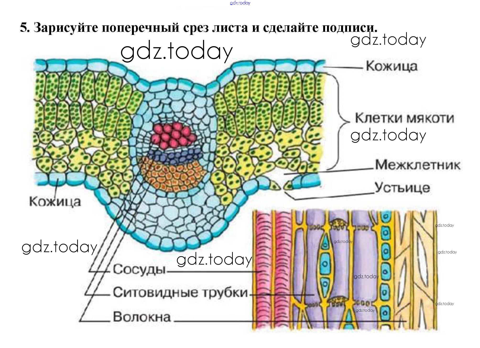 На страницах сайта gdz.today вы найдете учебный и вспомогательный материал, направленный на улучшения знаний школьной программы. ГДЗ - онлайн мир знаний Клеточное строение листа Решение к §7. Клеточное строение листа 5 Учебнику по Биологии для 6 класса Пасечник Дрофа Вертикаль 2014