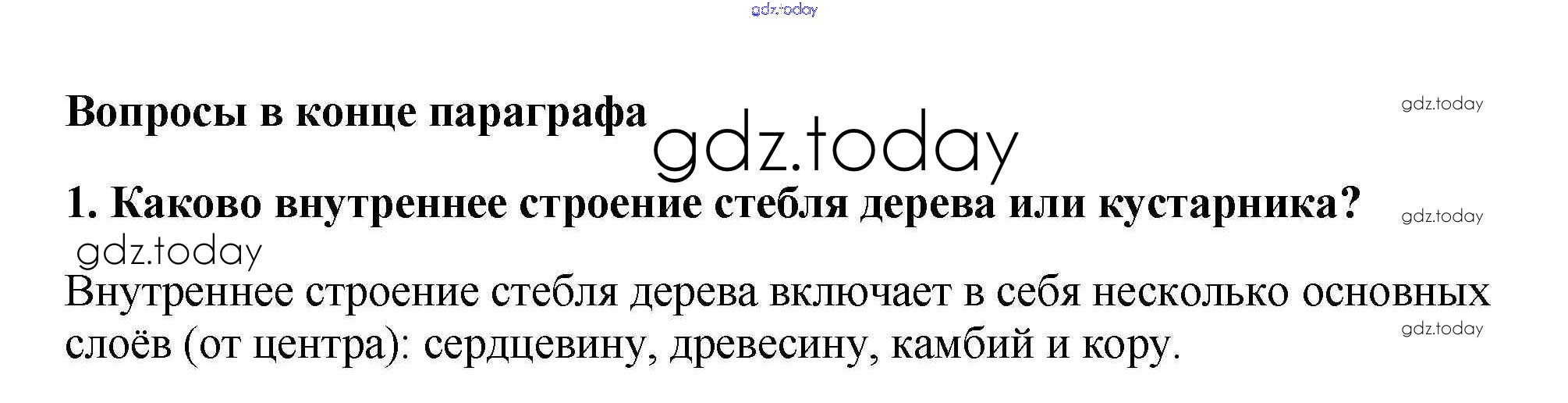 На страницах сайта gdz.today вы найдете учебный и вспомогательный материал, направленный на улучшения знаний школьной программы. ГДЗ - онлайн мир знаний Вопросы в конце параграфа Решение к §9. Строение стебля 1 Учебнику по Биологии для 6 класса Пасечник Дрофа Вертикаль 2014