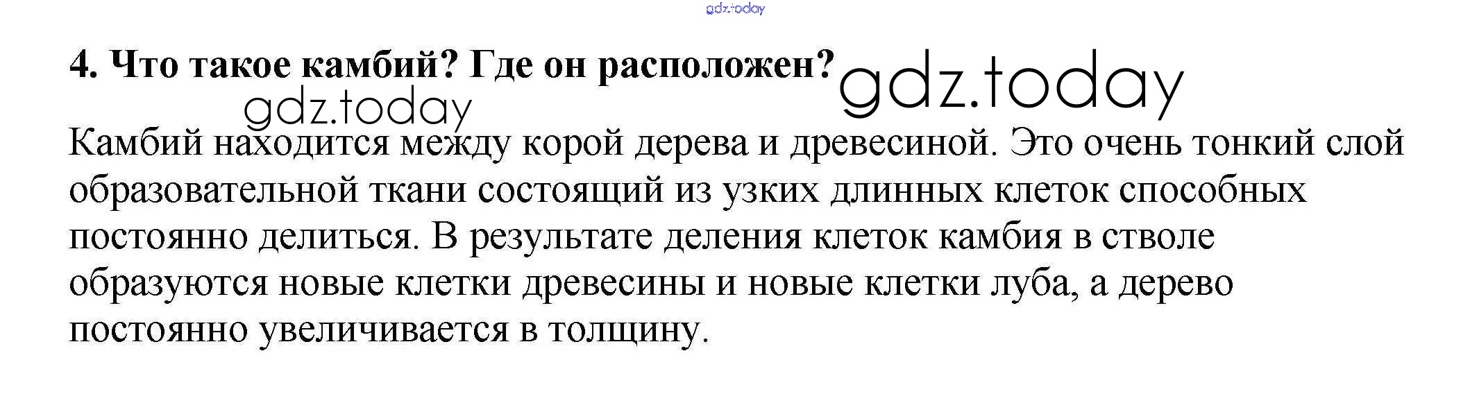 На страницах сайта gdz.today вы найдете учебный и вспомогательный материал, направленный на улучшения знаний школьной программы. ГДЗ - онлайн мир знаний Вопросы в конце параграфа Решение к §9. Строение стебля 4 Учебнику по Биологии для 6 класса Пасечник Дрофа Вертикаль 2014