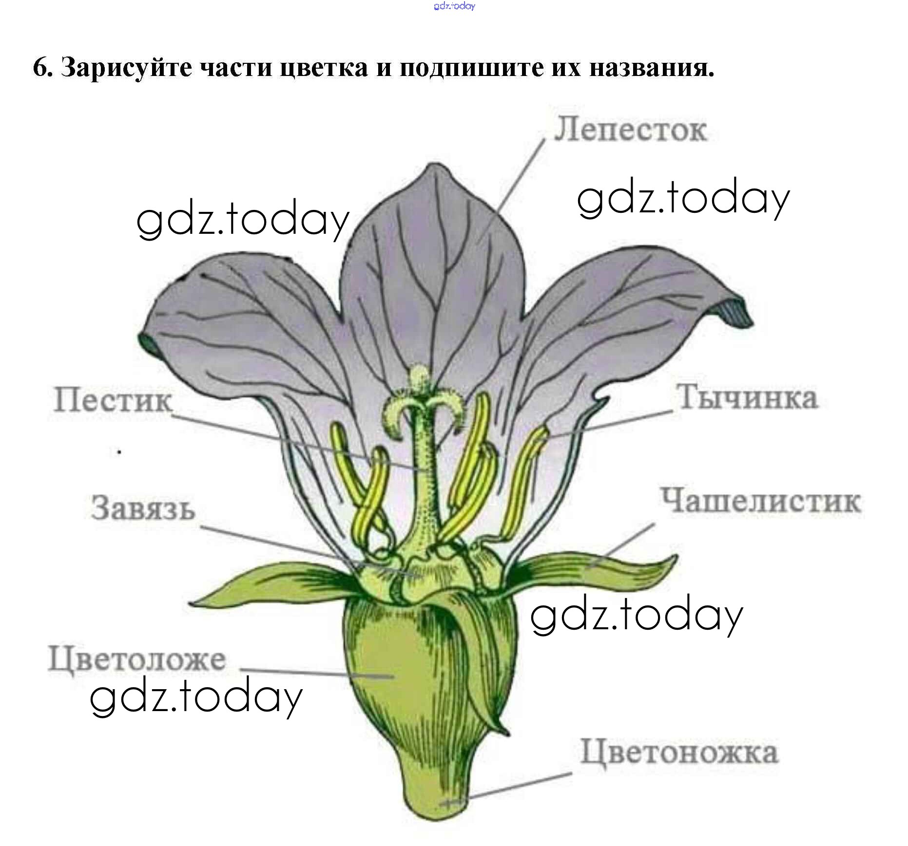 На страницах сайта gdz.today вы найдете учебный и вспомогательный материал, направленный на улучшения знаний школьной программы. ГДЗ - онлайн мир знаний Строение цветка Решение к §11. Цветок 6 Учебнику по Биологии для 6 класса Пасечник Дрофа Вертикаль 2014