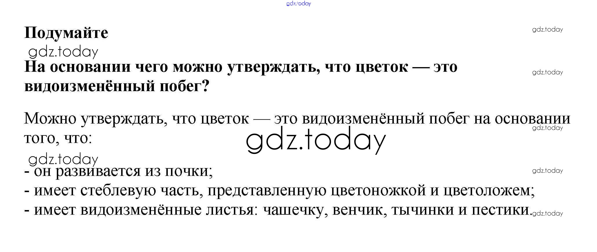 На страницах сайта gdz.today вы найдете учебный и вспомогательный материал, направленный на улучшения знаний школьной программы. ГДЗ - онлайн мир знаний Подумайте Решение к §11. Цветок 1 Учебнику по Биологии для 6 класса Пасечник Дрофа Вертикаль 2014