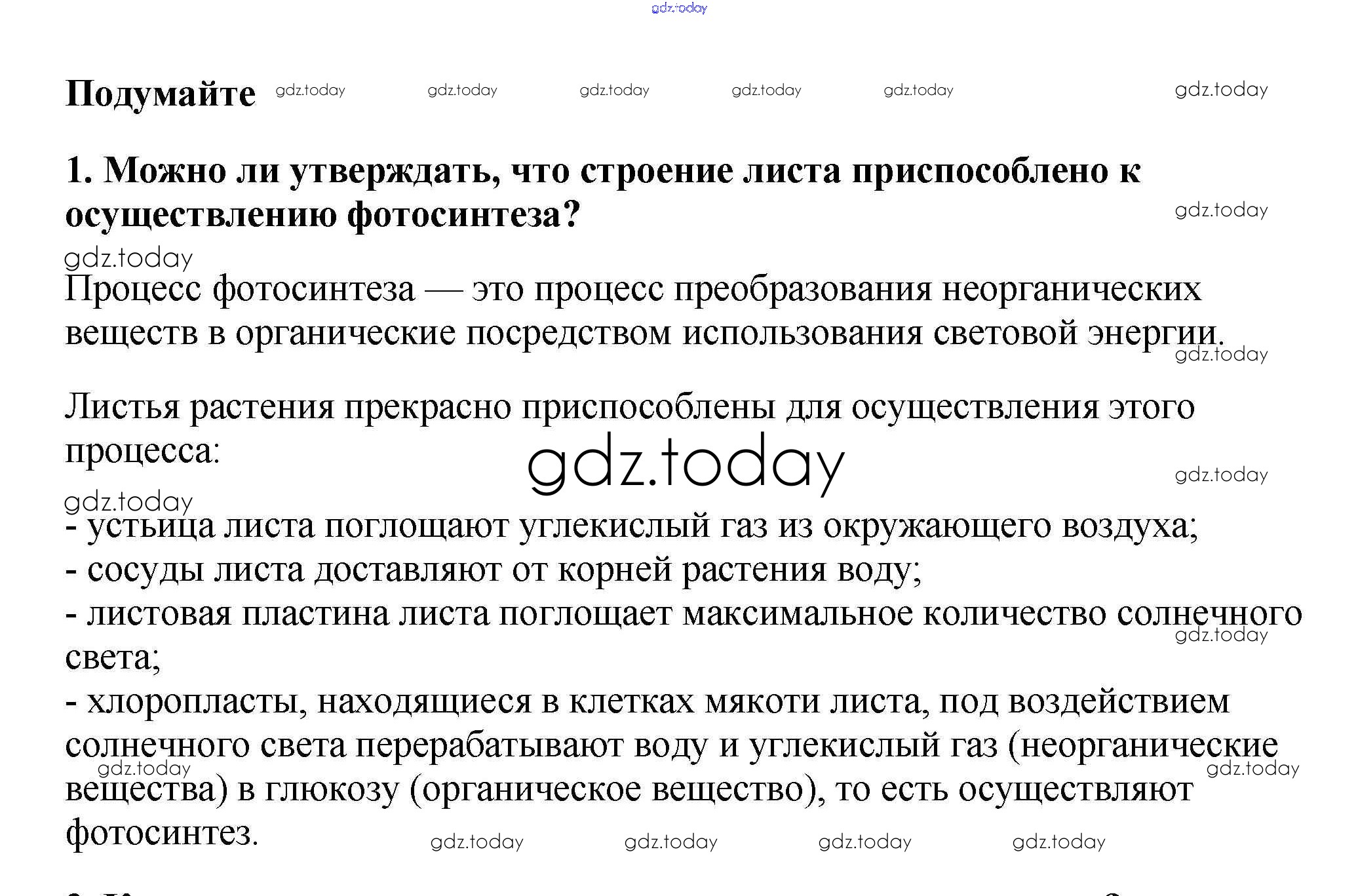На страницах сайта gdz.today вы найдете учебный и вспомогательный материал, направленный на улучшения знаний школьной программы. ГДЗ - онлайн мир знаний Подумайте Решение к §16. Фотосинтез 1 Учебнику по Биологии для 6 класса Пасечник Дрофа Вертикаль 2014