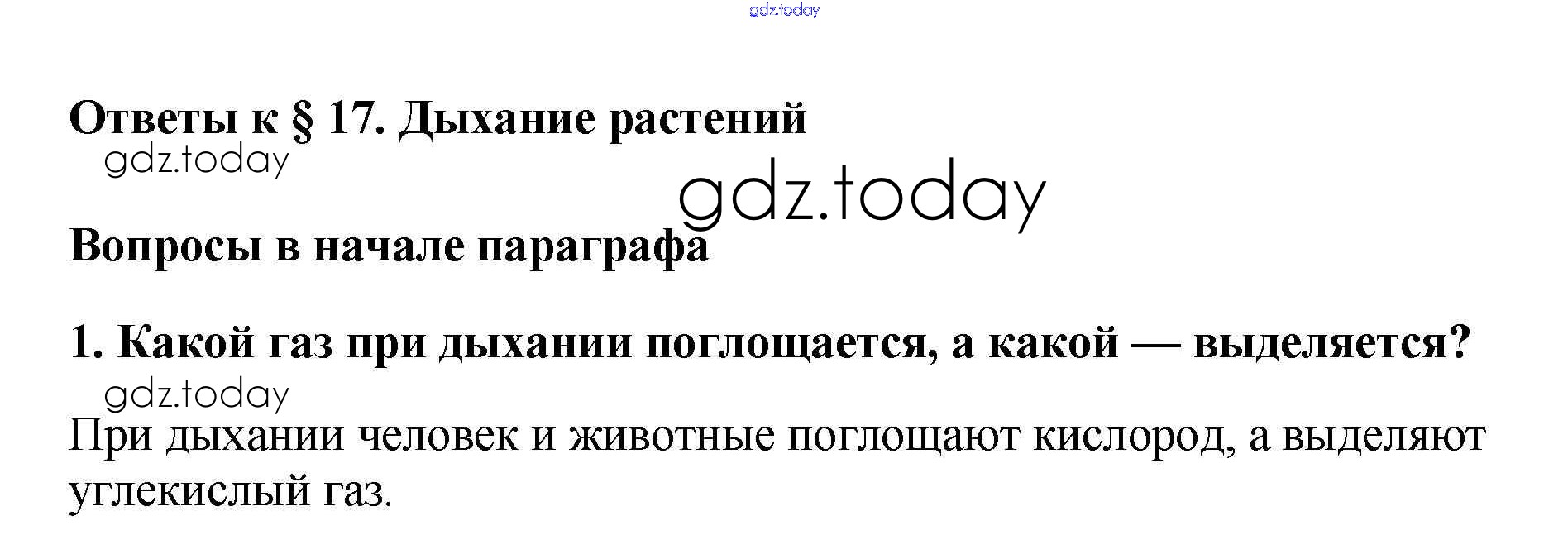 На страницах сайта gdz.today вы найдете учебный и вспомогательный материал, направленный на улучшения знаний школьной программы. ГДЗ - онлайн мир знаний Вопросы в начале параграфа Решение к §17. Дыхание растений 1 Учебнику по Биологии для 6 класса Пасечник Дрофа Вертикаль 2014