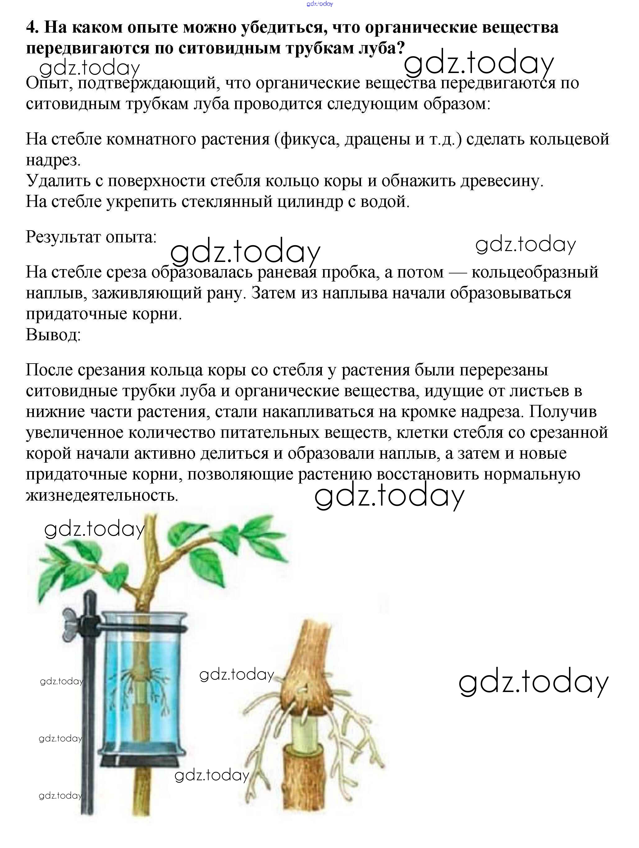 Ответы к Вопросы в конце параграфа Решение к §19. Передвижение воды и питательных веществ в растении 4 Учебнику по Биологии для 6 класса Пасечник Дрофа Вертикаль 2014