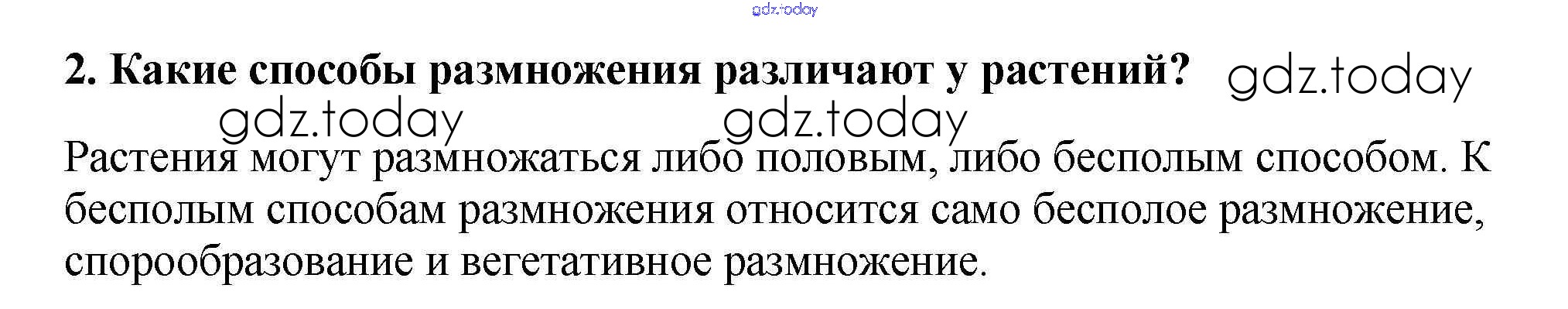 На страницах сайта gdz.today вы найдете учебный и вспомогательный материал, направленный на улучшения знаний школьной программы. ГДЗ - онлайн мир знаний Вопросы в конце параграфа Решение к §21. Способы размножения растений 2 Учебнику по Биологии для 6 класса Пасечник Дрофа Вертикаль 2014
