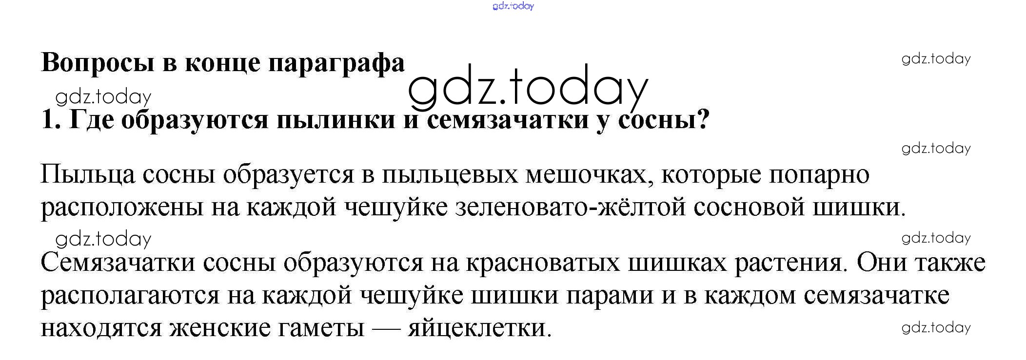 На страницах сайта gdz.today вы найдете учебный и вспомогательный материал, направленный на улучшения знаний школьной программы. ГДЗ - онлайн мир знаний Вопросы в конце параграфа Решение к §23. Размножение голосеменных растений 1 Учебнику по Биологии для 6 класса Пасечник Дрофа Вертикаль 2014