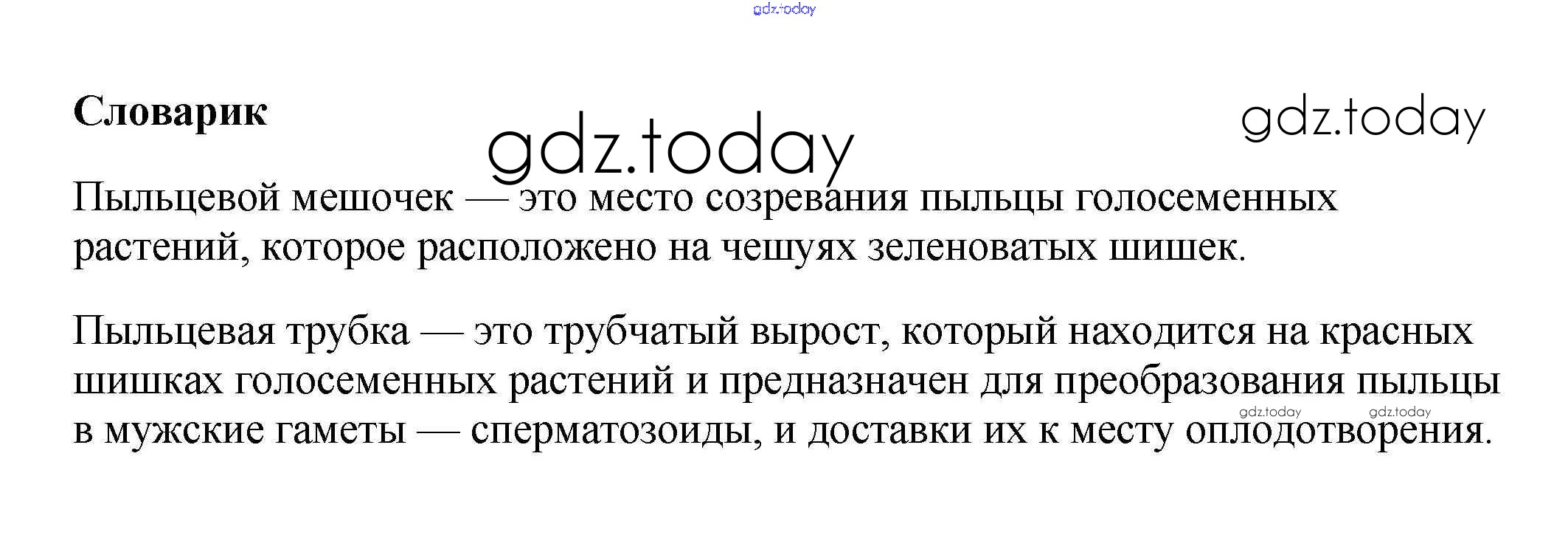 На страницах сайта gdz.today вы найдете учебный и вспомогательный материал, направленный на улучшения знаний школьной программы. ГДЗ - онлайн мир знаний Словарик Решение к §23. Размножение голосеменных растений 1 Учебнику по Биологии для 6 класса Пасечник Дрофа Вертикаль 2014