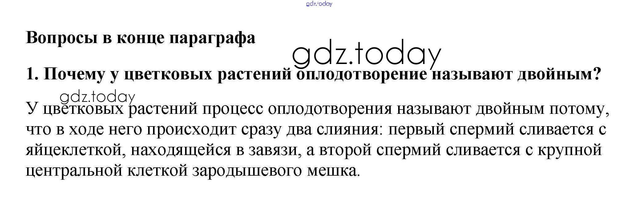 На страницах сайта gdz.today вы найдете учебный и вспомогательный материал, направленный на улучшения знаний школьной программы. ГДЗ - онлайн мир знаний Вопросы в конце параграфа Решение к §24. Половое размножение покрытосеменных растений 1 Учебнику по Биологии для 6 класса Пасечник  Дрофа Вертикаль 2014