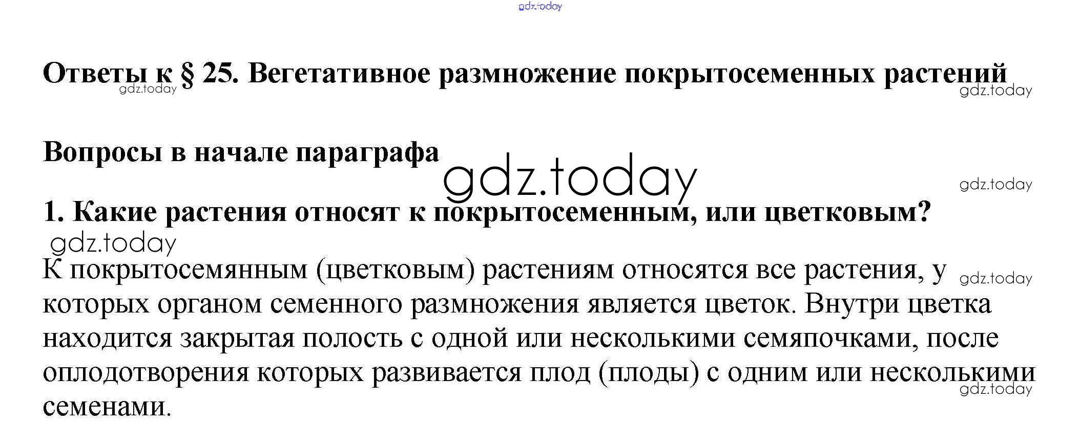 На страницах сайта gdz.today вы найдете учебный и вспомогательный материал, направленный на улучшения знаний школьной программы. ГДЗ - онлайн мир знаний Вопросы в начале параграфа Решение к §25. Вегетативное размножение покрытосеменных растений 1 Учебнику по Биологии для 6 класса Пасечник Дрофа Вертикаль 2014
