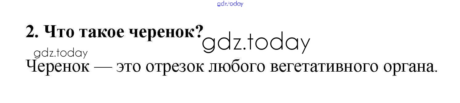 На страницах сайта gdz.today вы найдете учебный и вспомогательный материал, направленный на улучшения знаний школьной программы. ГДЗ - онлайн мир знаний Вопросы в конце параграфа Решение к §25. Вегетативное размножение покрытосеменных  растений 2 Учебнику по Биологии для 6 класса Пасечник  Дрофа Вертикаль 2014