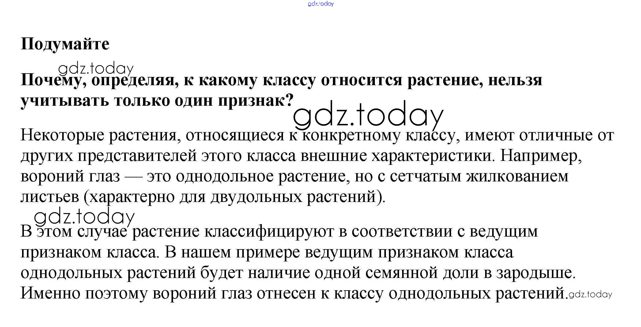 На страницах сайта gdz.today вы найдете учебный и вспомогательный материал, направленный на улучшения знаний школьной программы. ГДЗ - онлайн мир знаний Подумайте Решение к §26. Основы систематики растений 1 Учебнику по Биологии для 6 класса Пасечник Дрофа Вертикаль 2014