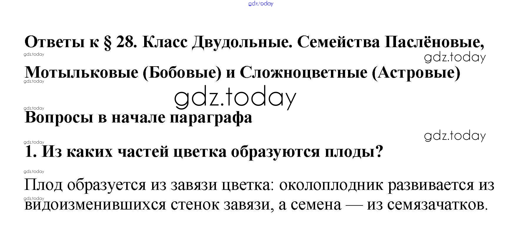 На страницах сайта gdz.today вы найдете учебный и вспомогательный материал, направленный на улучшения знаний школьной программы. ГДЗ - онлайн мир знаний Вопросы в начале параграфа Решение к §28. Класс Двудольные. Семейства Паслёновые, Мотыльковые (Бобовые) и Сложноцветные (Астровые) 1 Учебнику по Биологии для 6 класса Пасечник Дрофа Вертикаль 2014