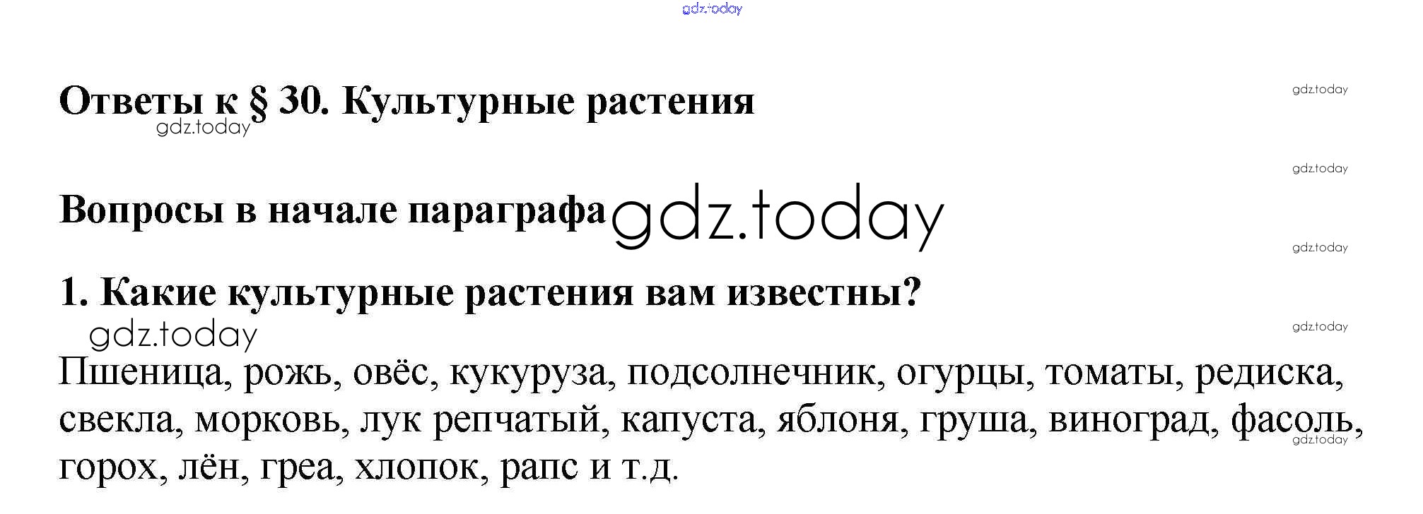 На страницах сайта gdz.today вы найдете учебный и вспомогательный материал, направленный на улучшения знаний школьной программы. ГДЗ - онлайн мир знаний Вопросы в начале параграфа Решение к §30. Культурные растения 1 Учебнику по Биологии для 6 класса Пасечник  Дрофа Вертикаль 2014