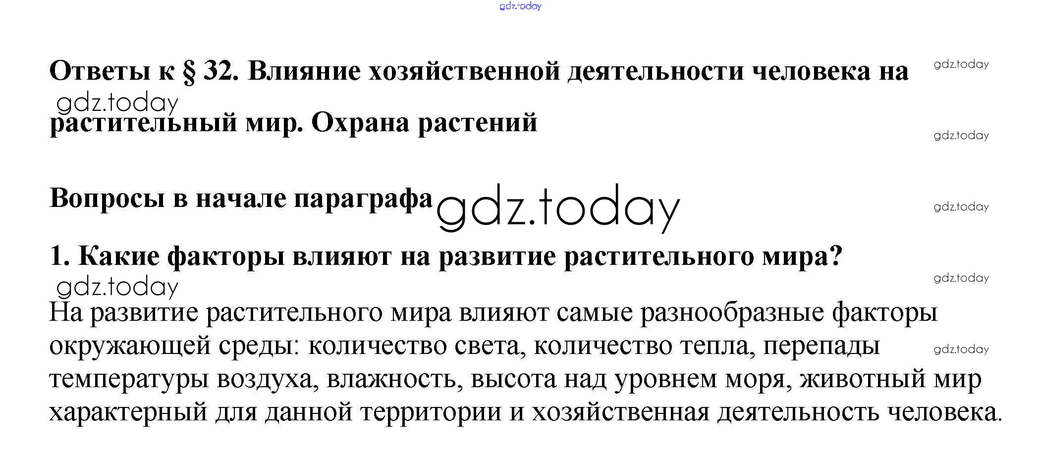 На страницах сайта gdz.today вы найдете учебный и вспомогательный материал, направленный на улучшения знаний школьной программы. ГДЗ - онлайн мир знаний Вопросы в начале параграфа Решение к §32. Влияние хозяйственной деятельности человека на растительный мир. Охрана растений 1 Учебнику по Биологии для 6 класса Пасечник Дрофа Вертикаль 2014