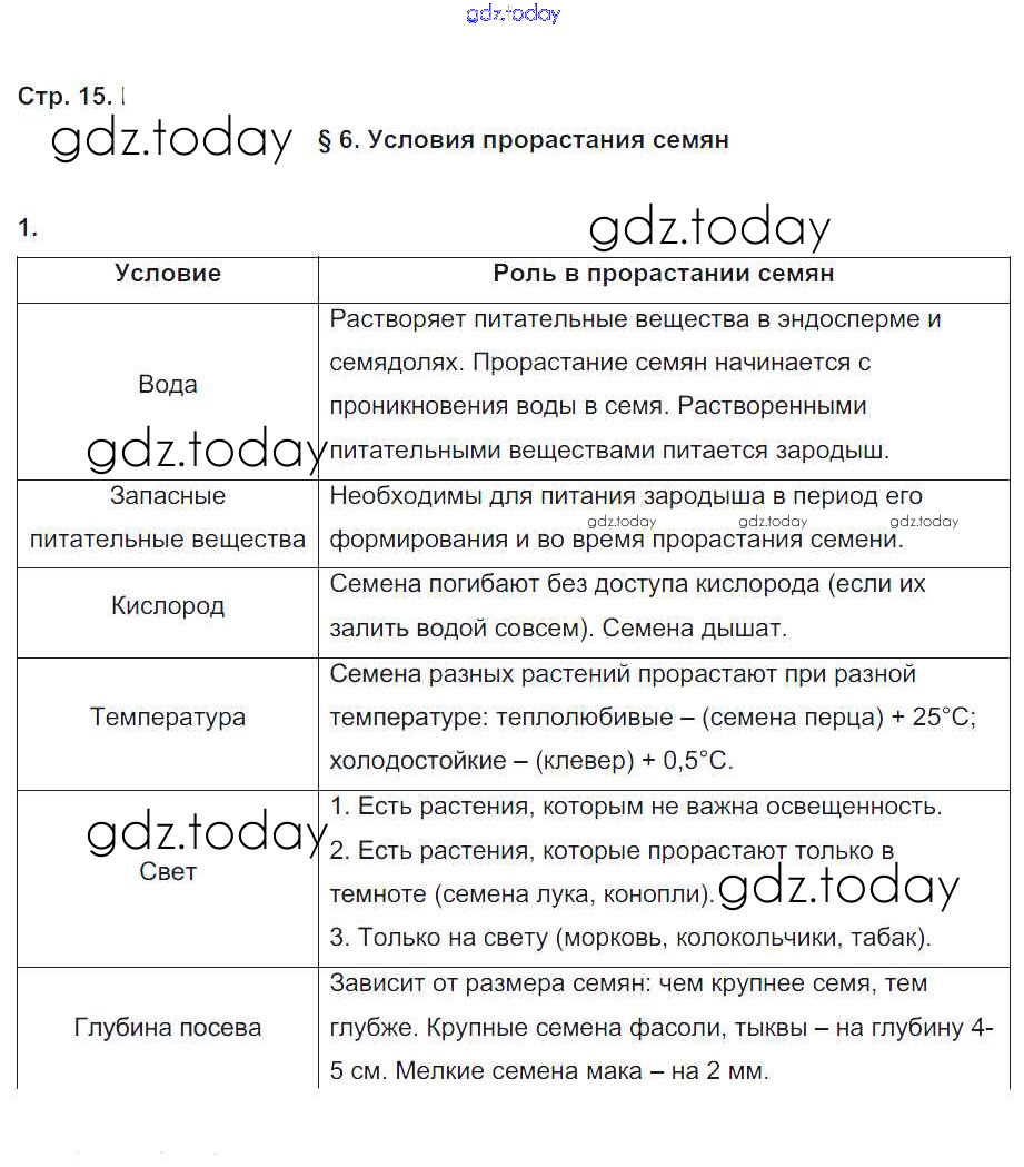 На страницах сайта gdz.today вы найдете учебный и вспомогательный материал, направленный на улучшения знаний школьной программы. ГДЗ - онлайн мир знаний Решение к части 1. Страницы 15 Рабочей тетради по Биологии для 6 класса Пономарева, Корнилова Вентана-граф Алгоритм успеха 2020