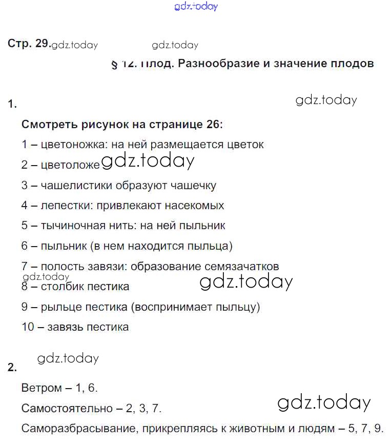 На страницах сайта gdz.today вы найдете учебный и вспомогательный материал, направленный на улучшения знаний школьной программы. ГДЗ - онлайн мир знаний Решение к части 1. Страницы 29 Рабочей тетради по Биологии для 6 класса Пономарева, Корнилова Вентана-граф Алгоритм успеха 2020