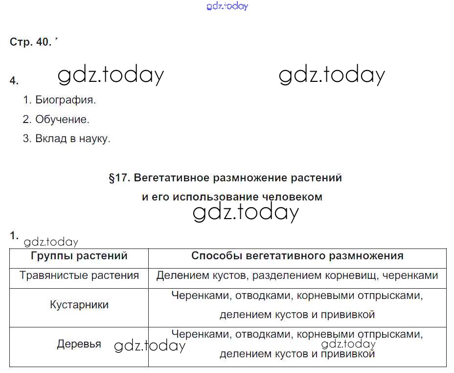 На страницах сайта gdz.today вы найдете учебный и вспомогательный материал, направленный на улучшения знаний школьной программы. ГДЗ - онлайн мир знаний Решение к части 1. Страницы 40 Рабочей тетради по Биологии для 6 класса Пономарева, Корнилова Вентана-граф Алгоритм успеха 2020