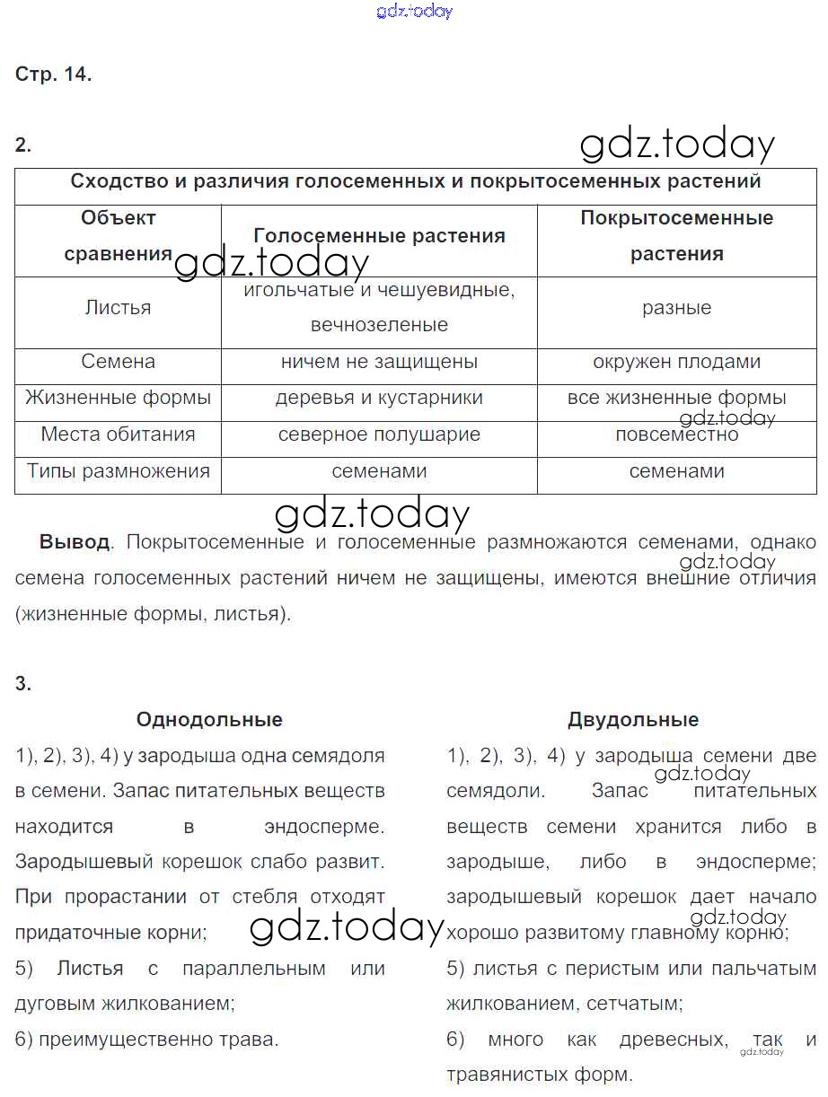 На страницах сайта gdz.today вы найдете учебный и вспомогательный материал, направленный на улучшения знаний школьной программы. ГДЗ - онлайн мир знаний Решение к части 2. Страницы 14 Рабочей тетради по Биологии для 6 класса Пономарева, Корнилова Вентана-граф Алгоритм успеха 2020