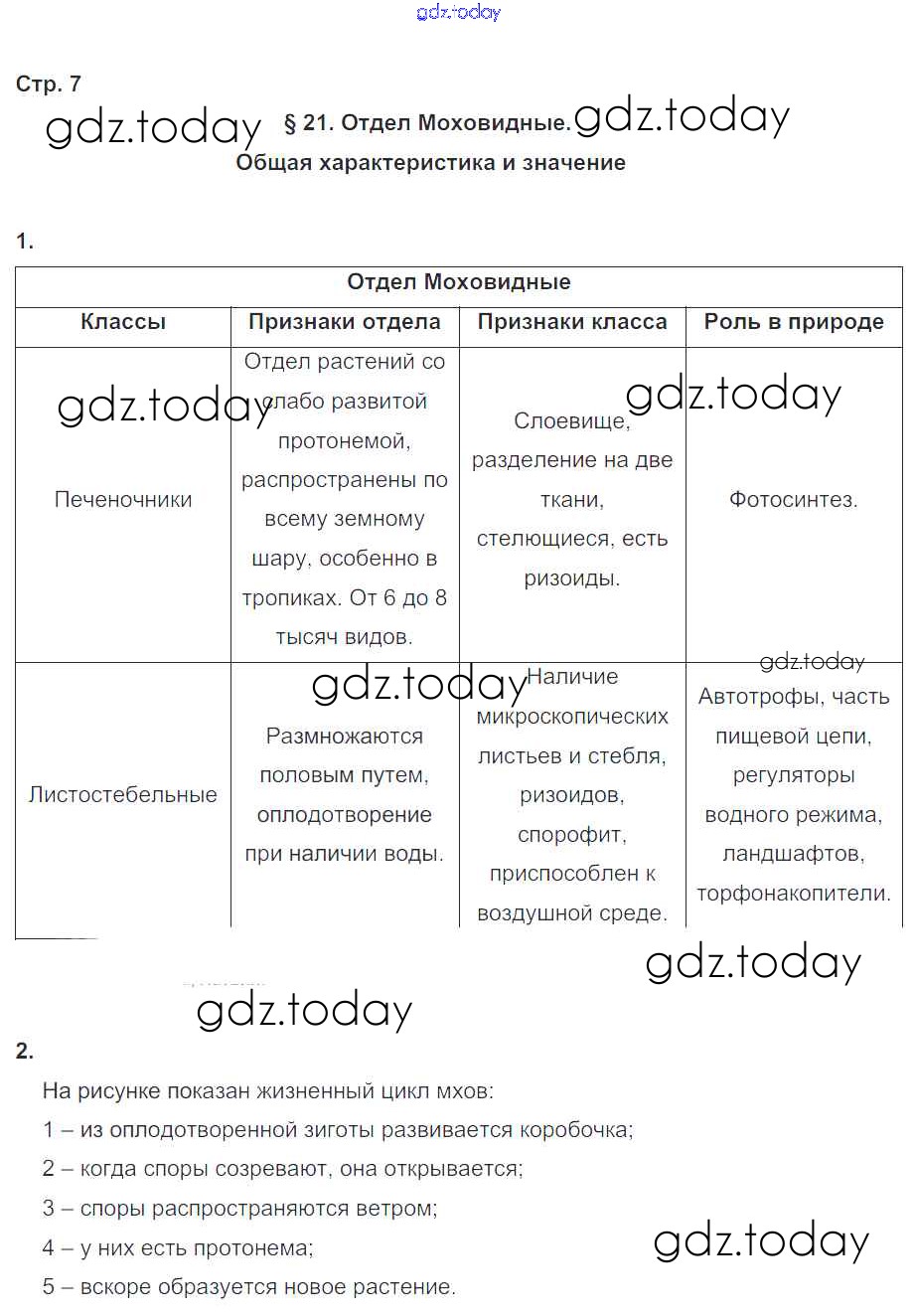 На страницах сайта gdz.today вы найдете учебный и вспомогательный материал, направленный на улучшения знаний школьной программы. ГДЗ - онлайн мир знаний Решение к части 2. Страницы 7 Рабочей тетради по Биологии для 6 класса Пономарева, Корнилова Вентана-граф Алгоритм успеха 2020