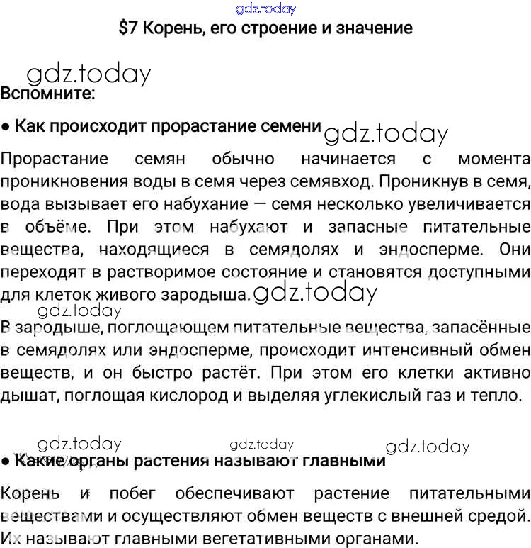 На страницах сайта gdz.today вы найдете учебный и вспомогательный материал, направленный на улучшения знаний школьной программы. ГДЗ - онлайн мир знаний Решение к §7 Вспомните Учебнику по Биологии для 6 класса Пономарева, Корнилова Вентана-граф Алгоритм успеха 2018