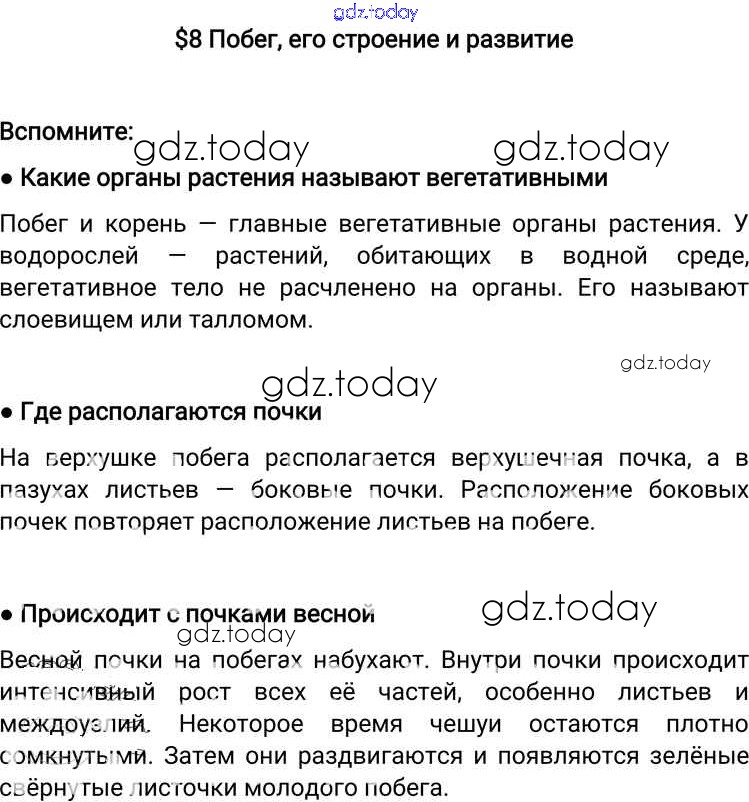 На страницах сайта gdz.today вы найдете учебный и вспомогательный материал, направленный на улучшения знаний школьной программы. ГДЗ - онлайн мир знаний Решение к §8 Вспомните Учебнику по Биологии для 6 класса Пономарева, Корнилова Вентана-граф Алгоритм успеха 2018