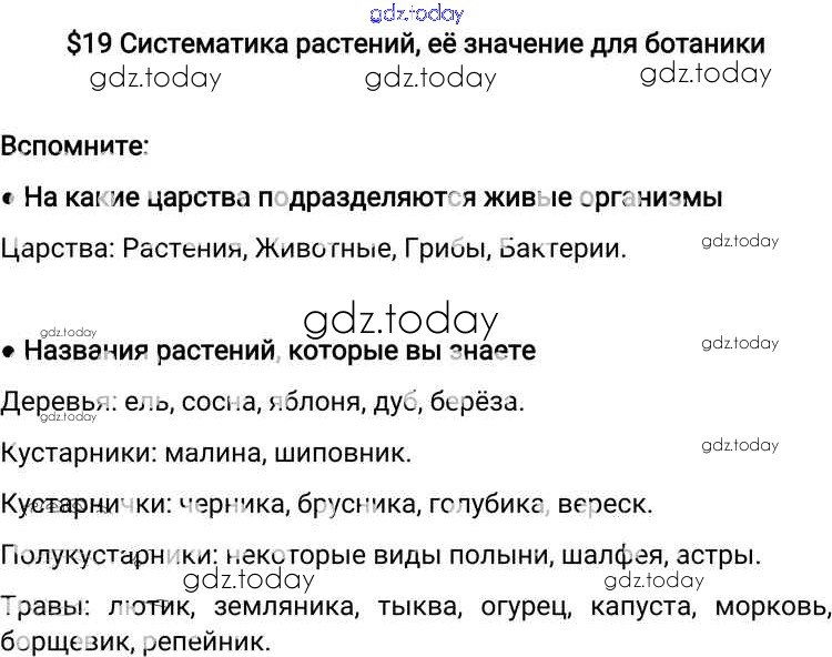 На страницах сайта gdz.today вы найдете учебный и вспомогательный материал, направленный на улучшения знаний школьной программы. ГДЗ - онлайн мир знаний Решение к §19 Вспомните Учебнику по Биологии для 6 класса Пономарева, Корнилова Вентана-граф Алгоритм успеха 2018