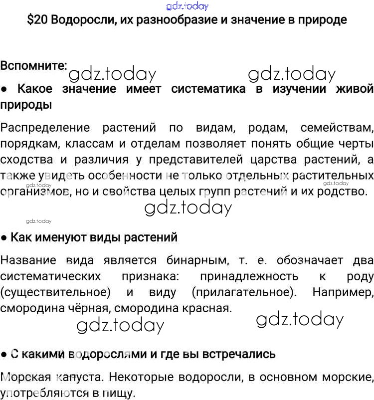 На страницах сайта gdz.today вы найдете учебный и вспомогательный материал, направленный на улучшения знаний школьной программы. ГДЗ - онлайн мир знаний Решение к §20 Вспомните Учебнику по Биологии для 6 класса Пономарева, Корнилова Вентана-граф Алгоритм успеха 2018