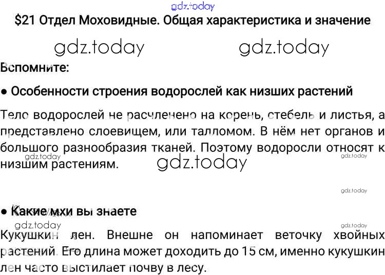 На страницах сайта gdz.today вы найдете учебный и вспомогательный материал, направленный на улучшения знаний школьной программы. ГДЗ - онлайн мир знаний Решение к §21 Вспомните Учебнику по Биологии для 6 класса Пономарева, Корнилова Вентана-граф Алгоритм успеха 2018