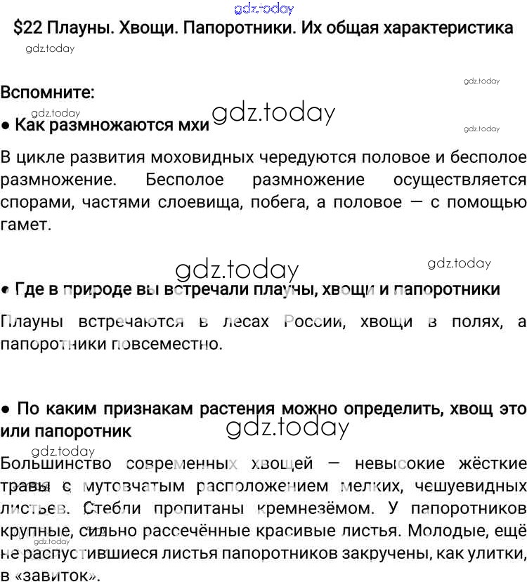 На страницах сайта gdz.today вы найдете учебный и вспомогательный материал, направленный на улучшения знаний школьной программы. ГДЗ - онлайн мир знаний Решение к §22 Вспомните Учебнику по Биологии для 6 класса Пономарева, Корнилова Вентана-граф Алгоритм успеха 2018