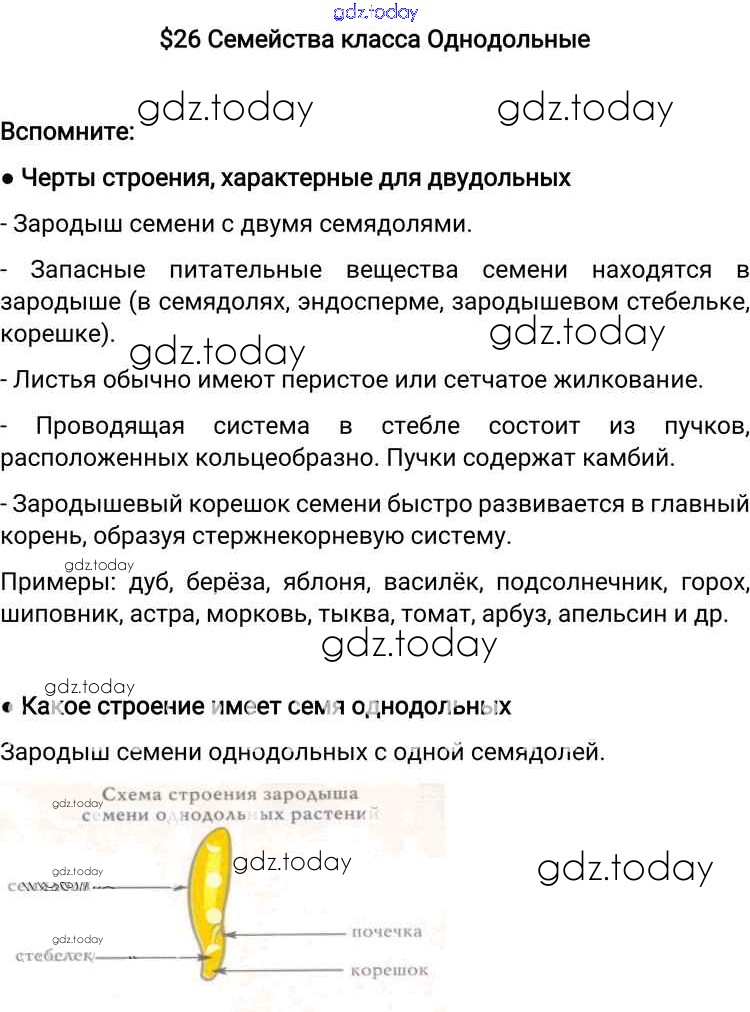 На страницах сайта gdz.today вы найдете учебный и вспомогательный материал, направленный на улучшения знаний школьной программы. ГДЗ - онлайн мир знаний Решение к §26 Вспомните Учебнику по Биологии для 6 класса Пономарева, Корнилова Вентана-граф Алгоритм успеха 2018