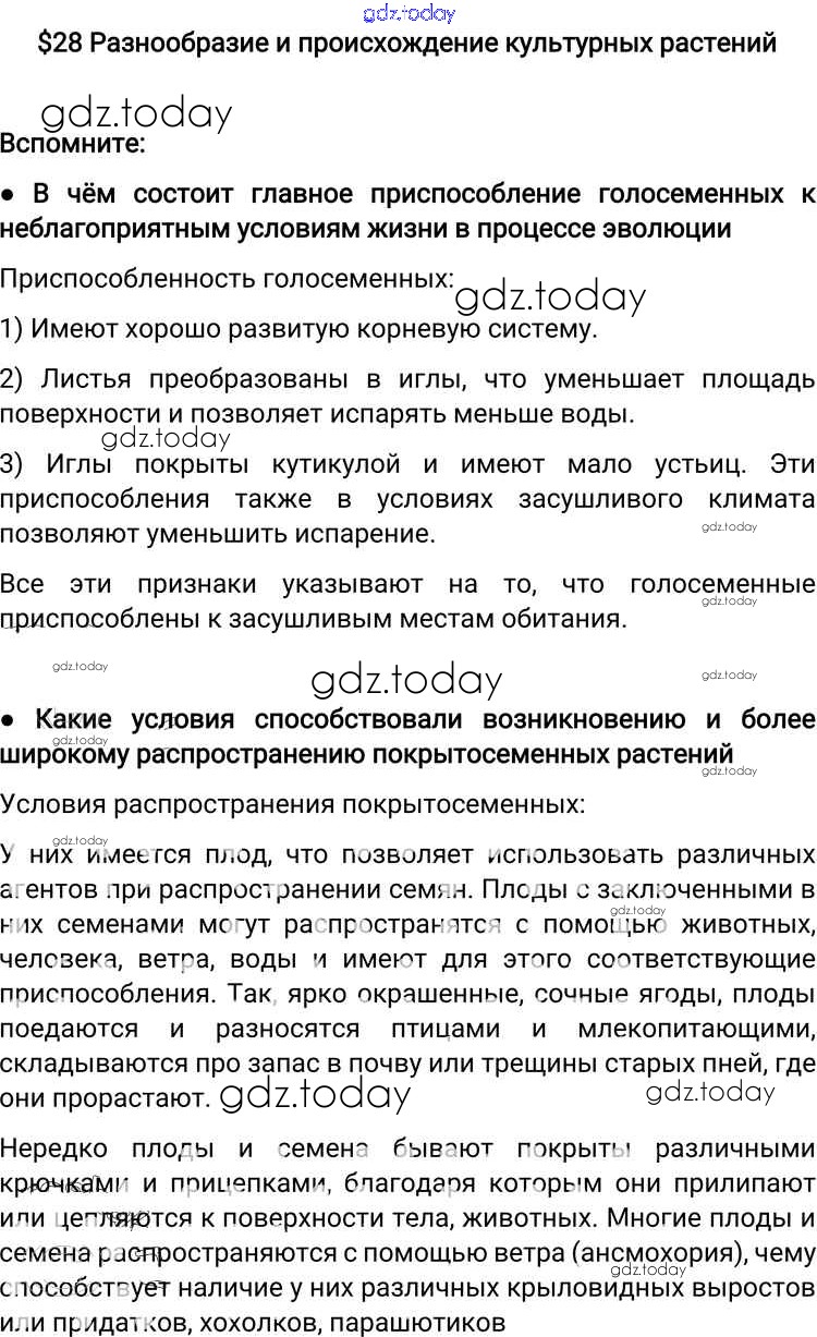 На страницах сайта gdz.today вы найдете учебный и вспомогательный материал, направленный на улучшения знаний школьной программы. ГДЗ - онлайн мир знаний Решение к §28 Вспомните Учебнику по Биологии для 6 класса Пономарева, Корнилова Вентана-граф Алгоритм успеха 2018
