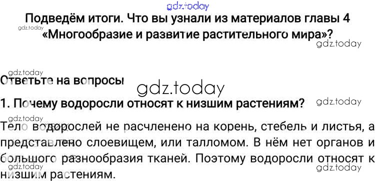 На страницах сайта gdz.today вы найдете учебный и вспомогательный материал, направленный на улучшения знаний школьной программы. ГДЗ - онлайн мир знаний Подведём итоги. глава 4 1 Учебнику по Биологии для 6 класса Пономарева, Корнилова Вентана-граф Алгоритм успеха 2018