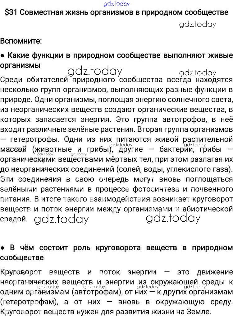 На страницах сайта gdz.today вы найдете учебный и вспомогательный материал, направленный на улучшения знаний школьной программы. ГДЗ - онлайн мир знаний Решение к §31 Вспомните Учебнику по Биологии для 6 класса Пономарева, Корнилова Вентана-граф Алгоритм успеха 2018