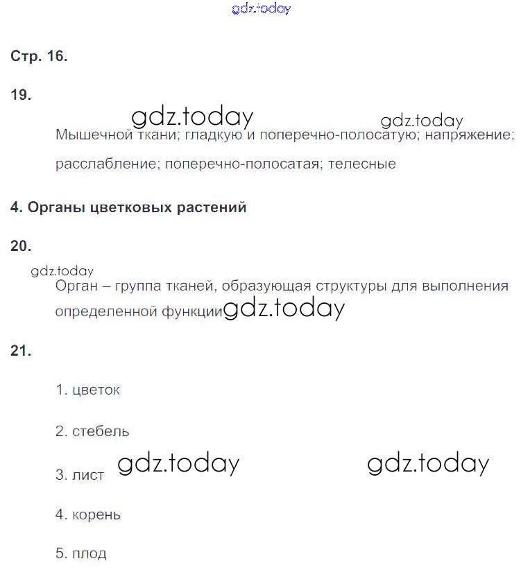 На страницах сайта gdz.today вы найдете учебный и вспомогательный материал, направленный на улучшения знаний школьной программы. ГДЗ - онлайн мир знаний Страницы (решение) 16 Рабочей тетради по Биологии для 6 класса Сонин Дрофа Живой организм 2020