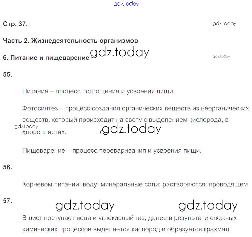 На страницах сайта gdz.today вы найдете учебный и вспомогательный материал, направленный на улучшения знаний школьной программы. ГДЗ - онлайн мир знаний Страницы (решение) 37 Рабочей тетради по Биологии для 6 класса Сонин Дрофа Живой организм 2020