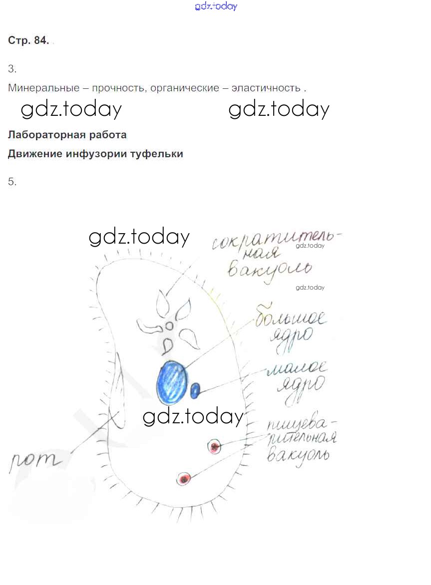 На страницах сайта gdz.today вы найдете учебный и вспомогательный материал, направленный на улучшения знаний школьной программы. ГДЗ - онлайн мир знаний Страницы (решение) 84 Рабочей тетради по Биологии для 6 класса Сонин Дрофа Живой организм 2020