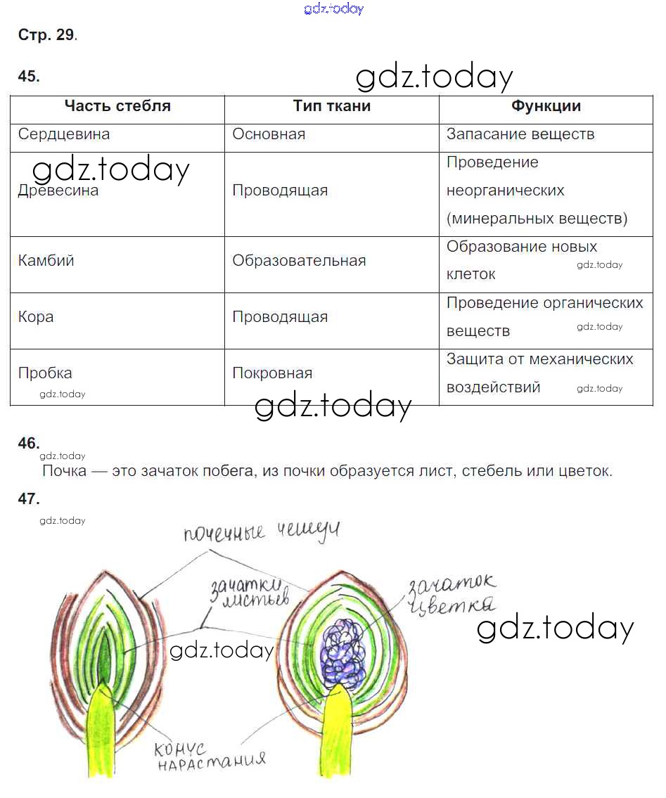 Ответы к Страницы (решение) 29 Рабочей тетради по Биологии для 6 класса Сонин Дрофа Живой организм 2017