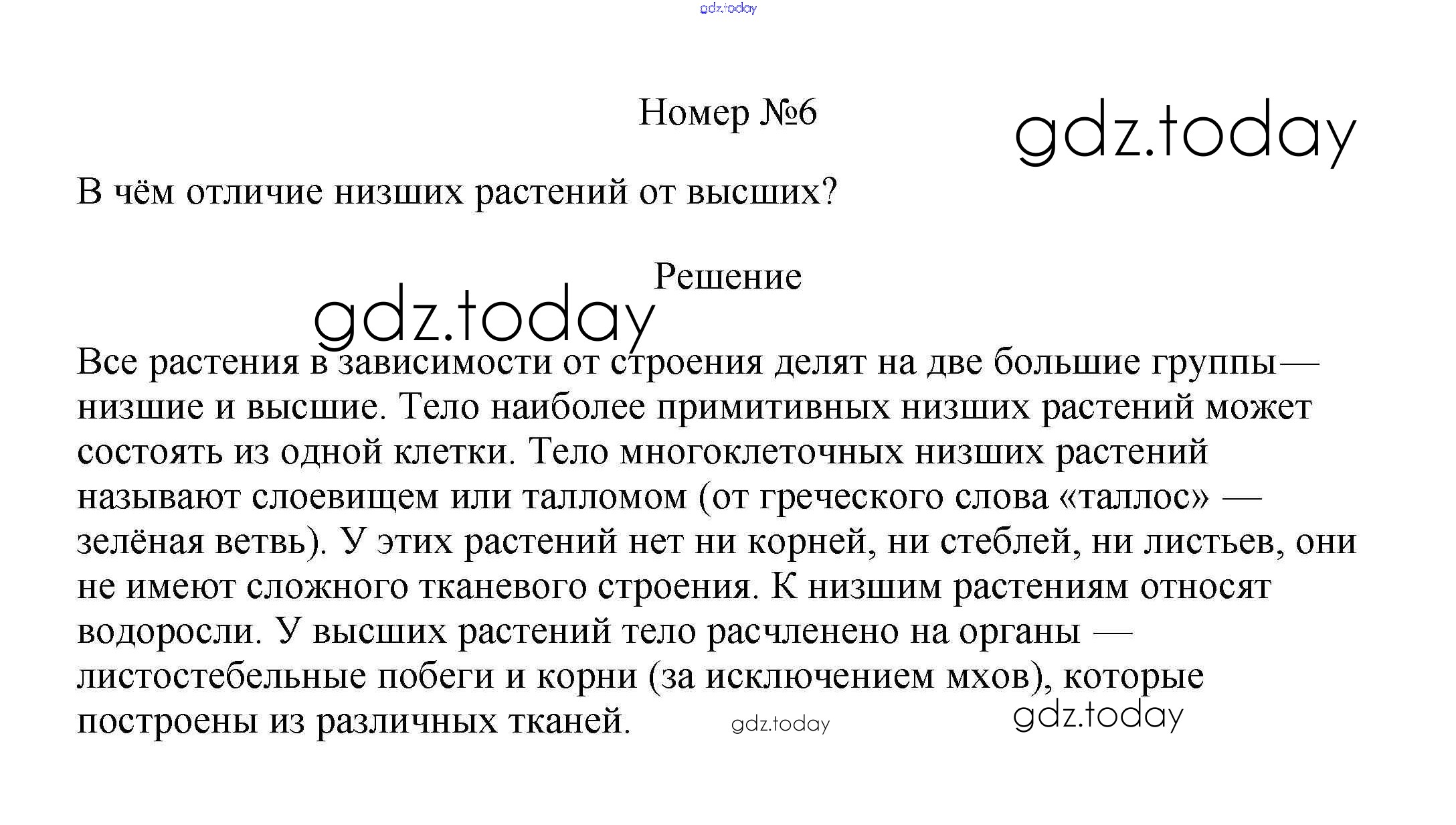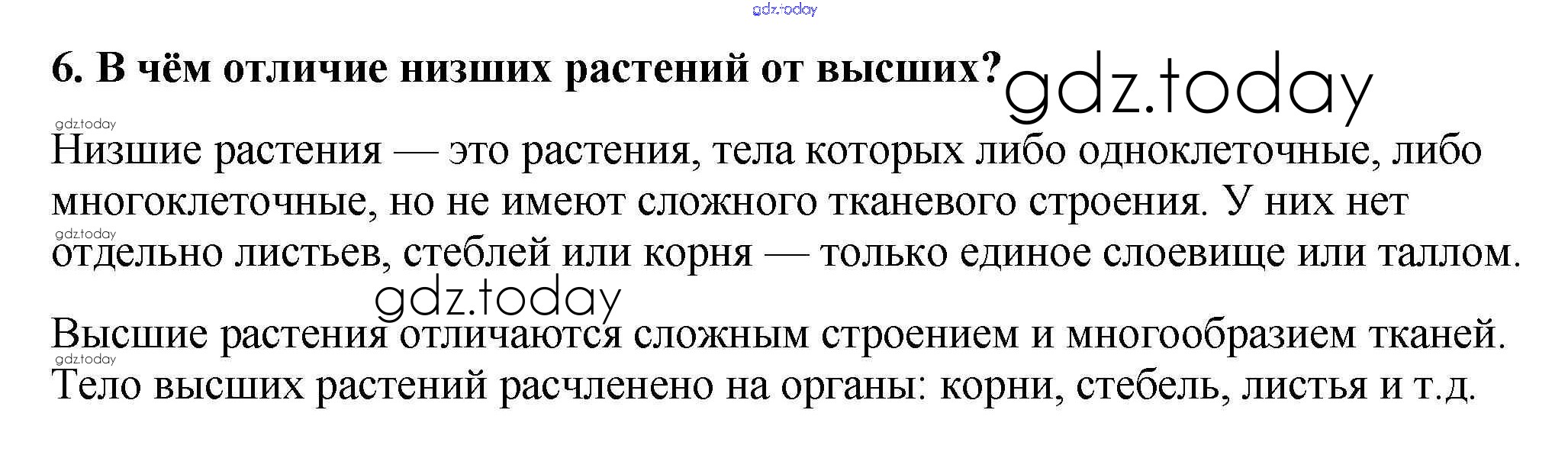 На страницах сайта gdz.today вы найдете учебный и вспомогательный материал, направленный на улучшения знаний школьной программы. ГДЗ - онлайн мир знаний Вопросы Решение к §1 6 Учебнику по Биологии для 6 класса Пасечник Линейный курс Дрофа 2020