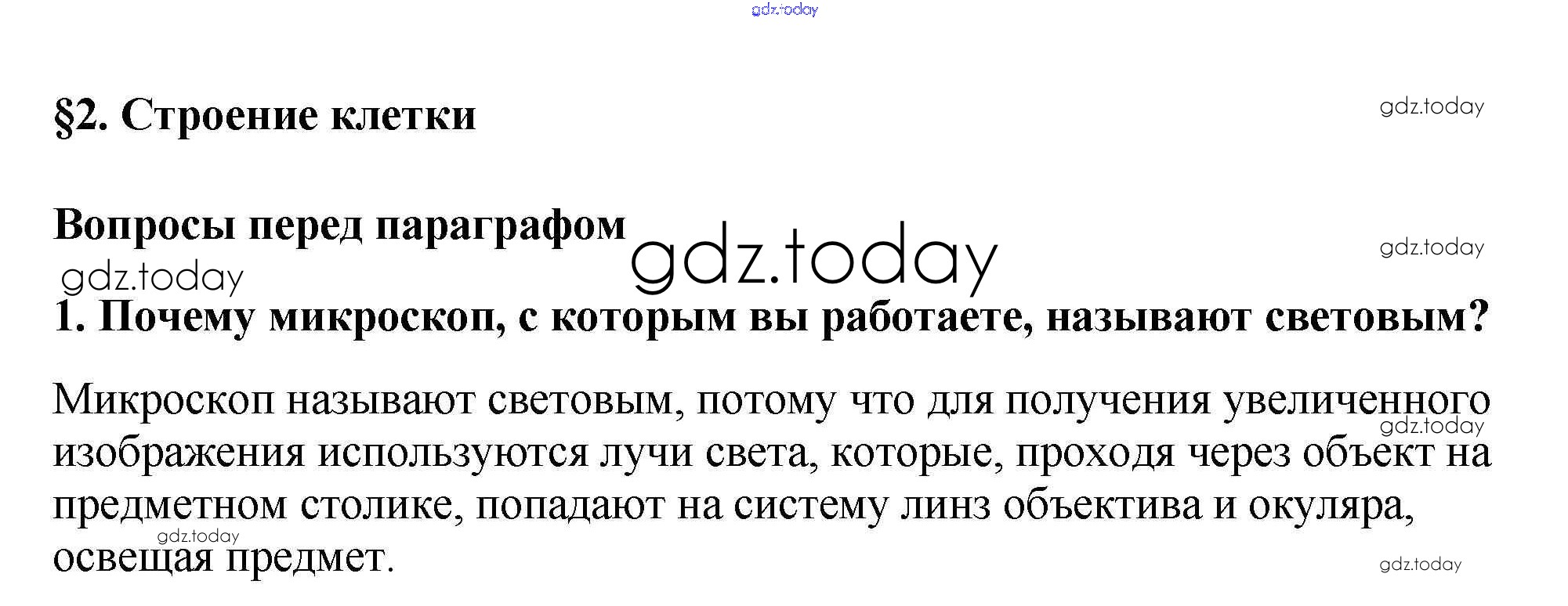 На страницах сайта gdz.today вы найдете учебный и вспомогательный материал, направленный на улучшения знаний школьной программы. ГДЗ - онлайн мир знаний Вопросы перед параграфом Решение к §2 1 Учебнику по Биологии для 6 класса Пасечник Линейный курс Дрофа 2020