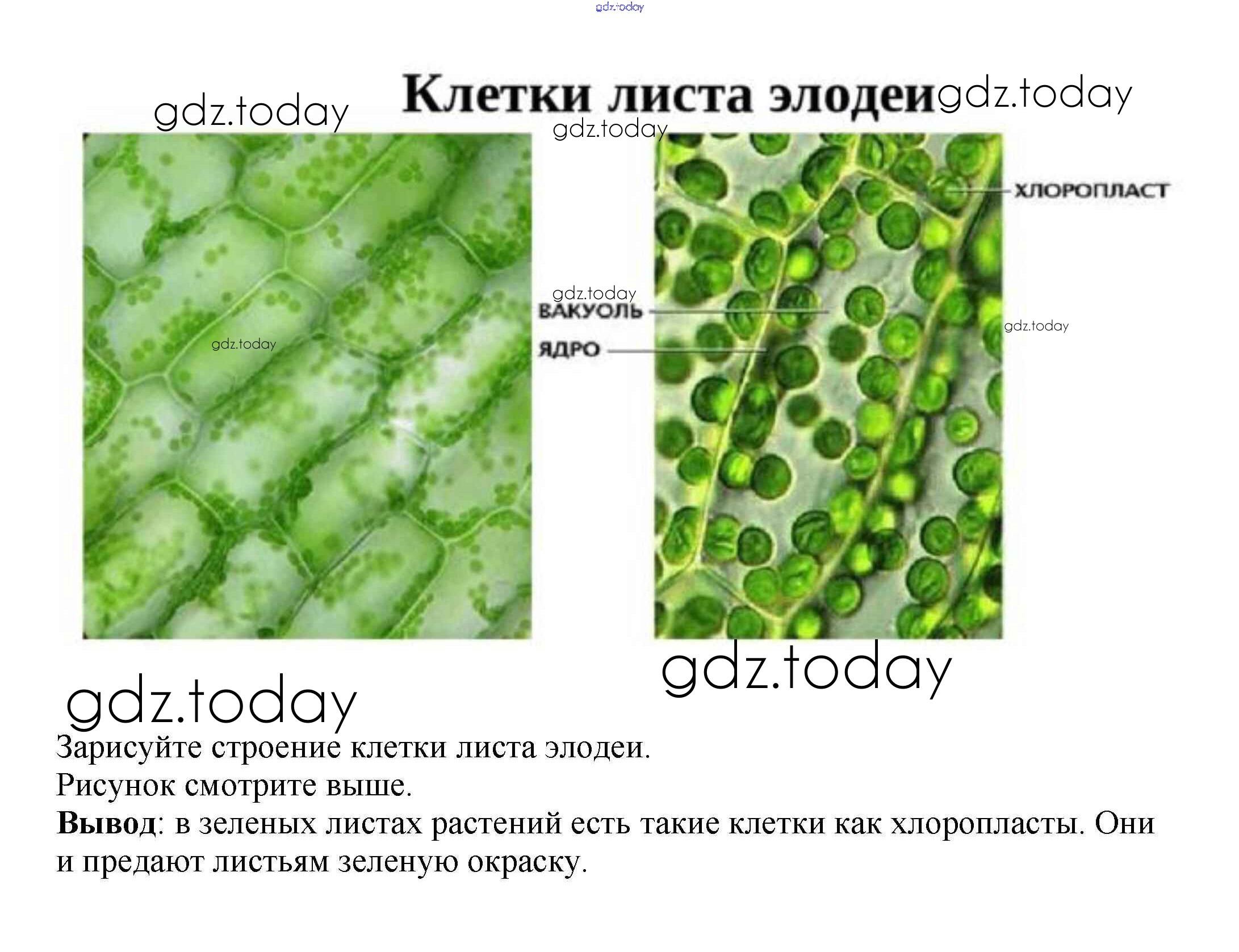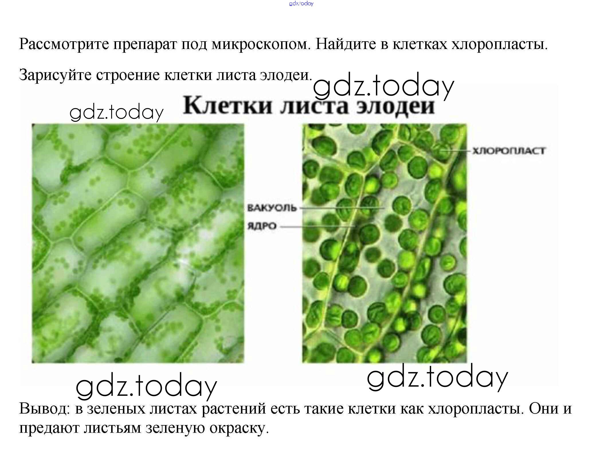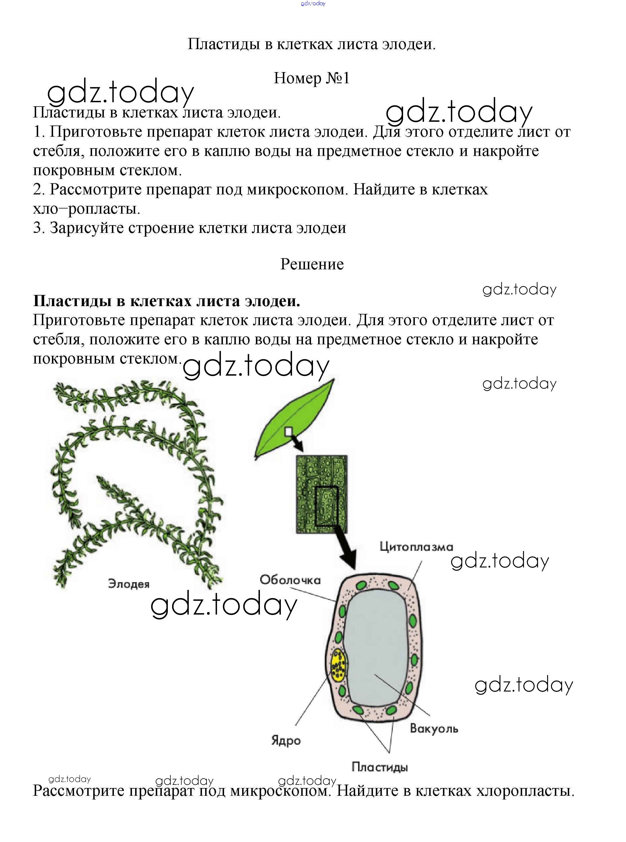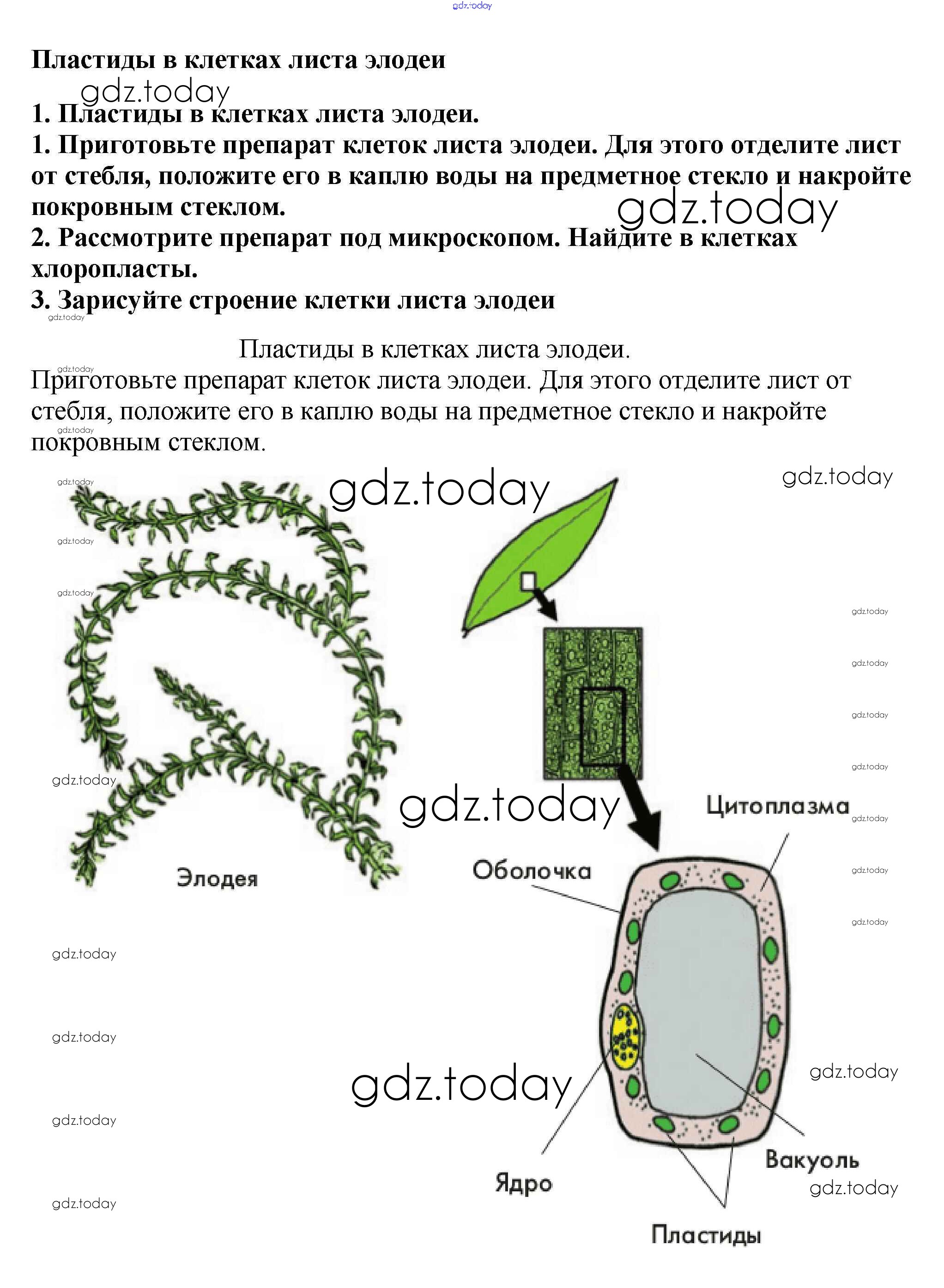 На страницах сайта gdz.today вы найдете учебный и вспомогательный материал, направленный на улучшения знаний школьной программы. ГДЗ - онлайн мир знаний Пластиды в клетках листа элодеи Решение к §2 1 Учебнику по Биологии для 6 класса Пасечник Линейный курс Дрофа 2020