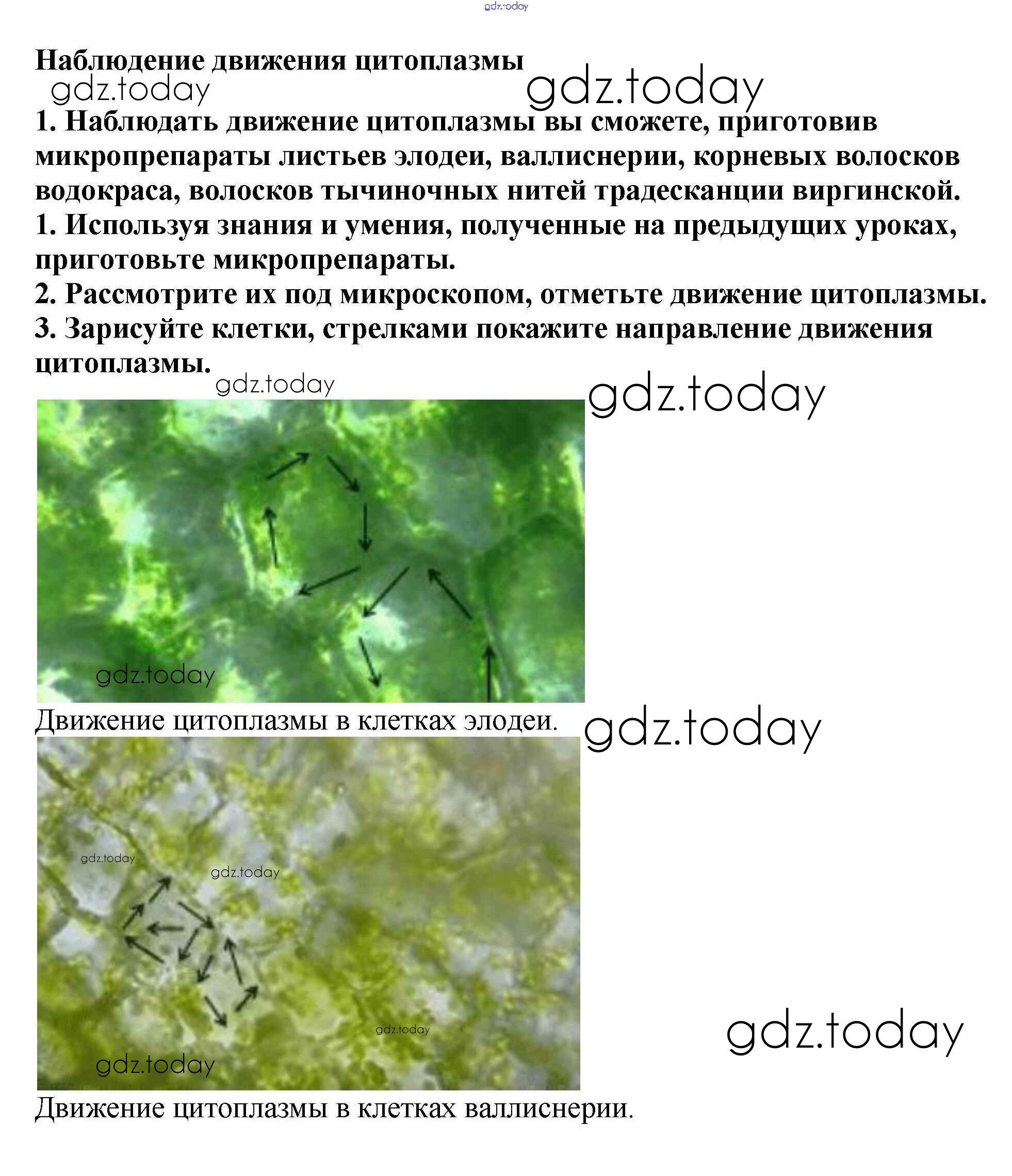 На страницах сайта gdz.today вы найдете учебный и вспомогательный материал, направленный на улучшения знаний школьной программы. ГДЗ - онлайн мир знаний Наблюдение движения цитоплазмы Решение к §4 1 Учебнику по Биологии для 6 класса Пасечник Линейный курс Дрофа 2020