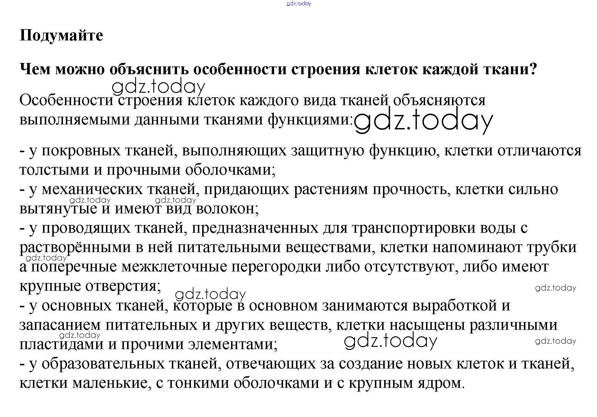 На страницах сайта gdz.today вы найдете учебный и вспомогательный материал, направленный на улучшения знаний школьной программы. ГДЗ - онлайн мир знаний Подумайте Решение к §5 1 Учебнику по Биологии для 6 класса Пасечник Линейный курс Дрофа 2020