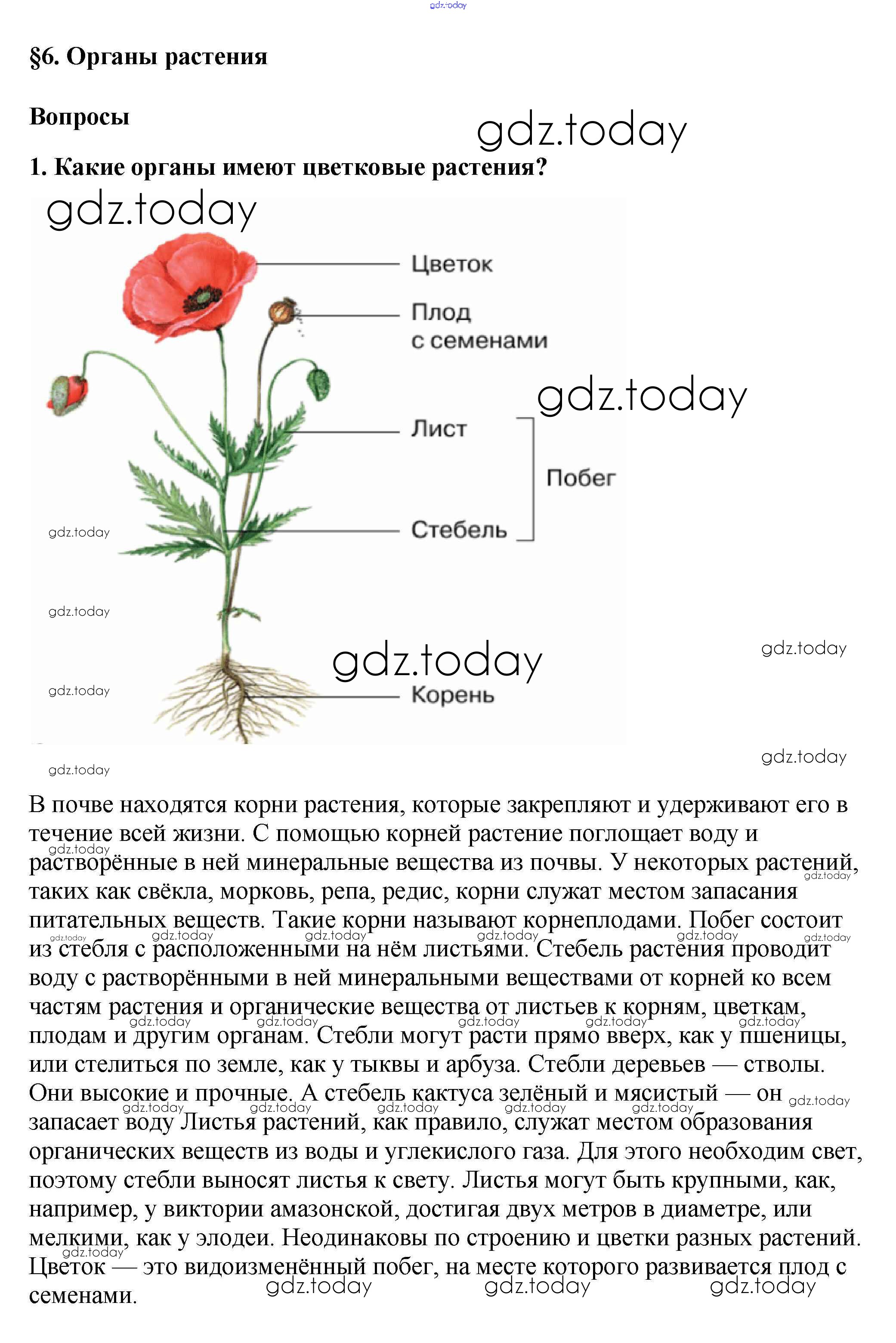На страницах сайта gdz.today вы найдете учебный и вспомогательный материал, направленный на улучшения знаний школьной программы. ГДЗ - онлайн мир знаний Вопросы Решение к §6 1 Учебнику по Биологии для 6 класса Пасечник Линейный курс Дрофа 2020