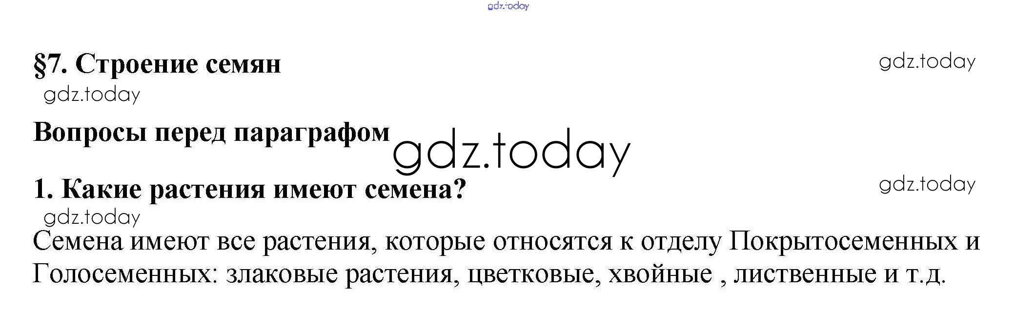 На страницах сайта gdz.today вы найдете учебный и вспомогательный материал, направленный на улучшения знаний школьной программы. ГДЗ - онлайн мир знаний Вопросы перед параграфом Решение к §7 1 Учебнику по Биологии для 6 класса Пасечник Линейный курс Дрофа 2020