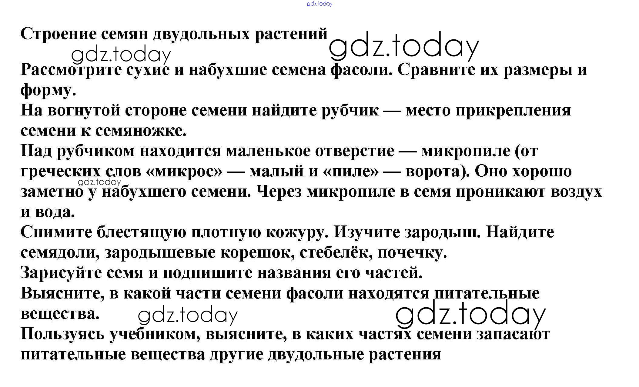 На страницах сайта gdz.today вы найдете учебный и вспомогательный материал, направленный на улучшения знаний школьной программы. ГДЗ - онлайн мир знаний Строение семян двудольных растений Решение к §7 1 Учебнику по Биологии для 6 класса Пасечник Линейный курс Дрофа 2020