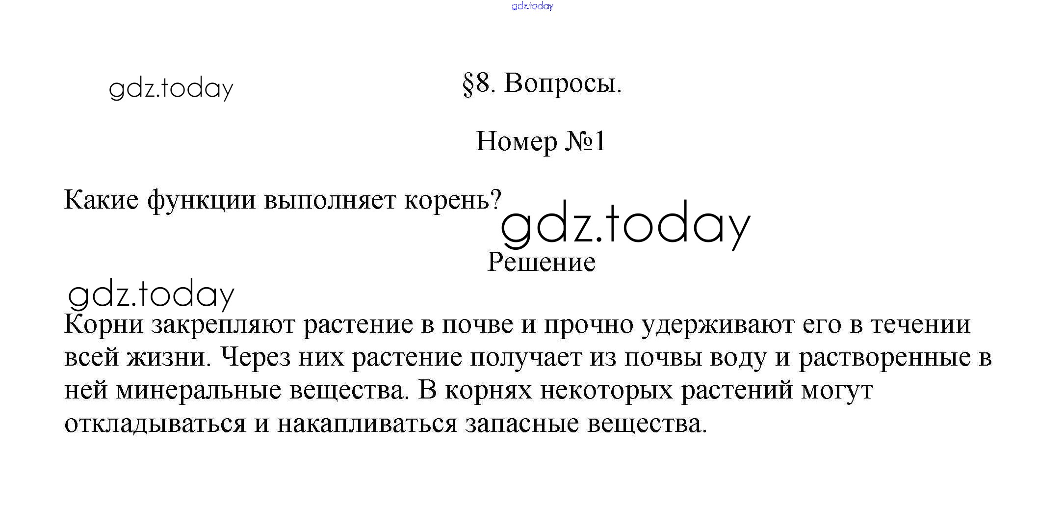 На страницах сайта gdz.today вы найдете учебный и вспомогательный материал, направленный на улучшения знаний школьной программы. ГДЗ - онлайн мир знаний Вопросы Решение к §8 1 Учебнику по Биологии для 6 класса Пасечник Линейный курс Дрофа 2020