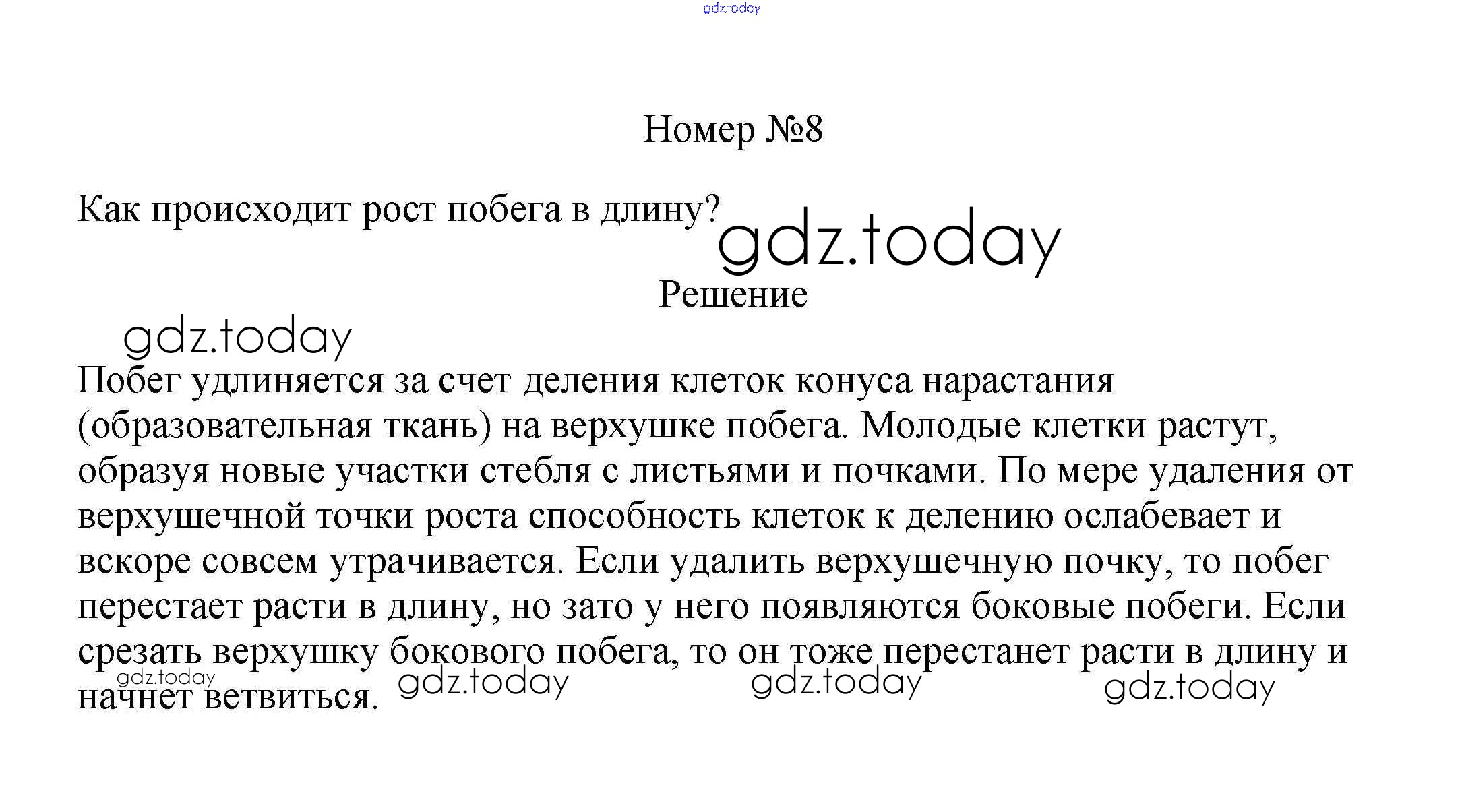 На страницах сайта gdz.today вы найдете учебный и вспомогательный материал, направленный на улучшения знаний школьной программы. ГДЗ - онлайн мир знаний Вопросы Решение к §11 8 Учебнику по Биологии для 6 класса Пасечник Линейный курс Дрофа 2020