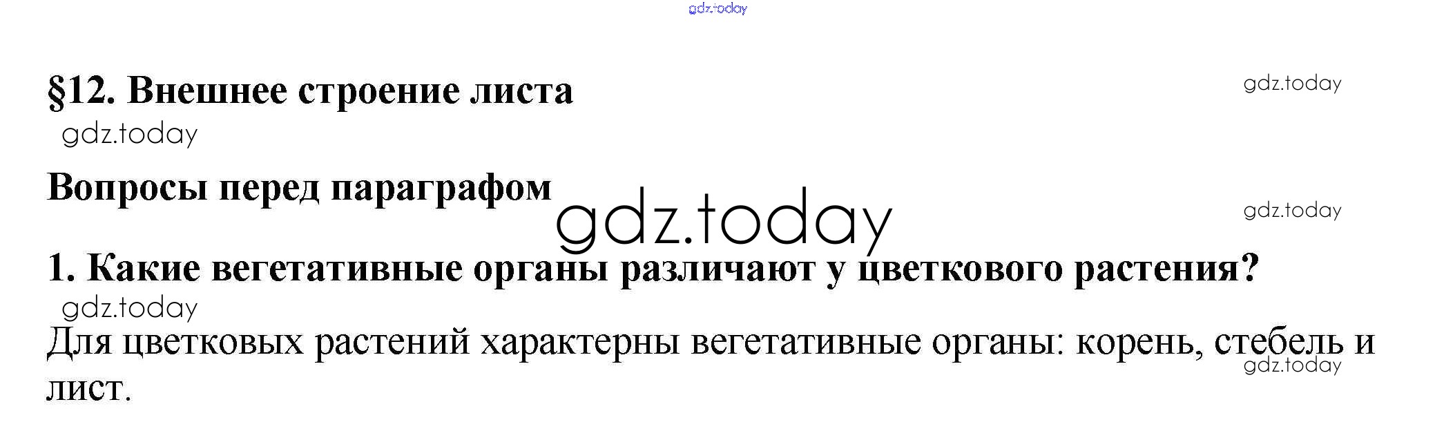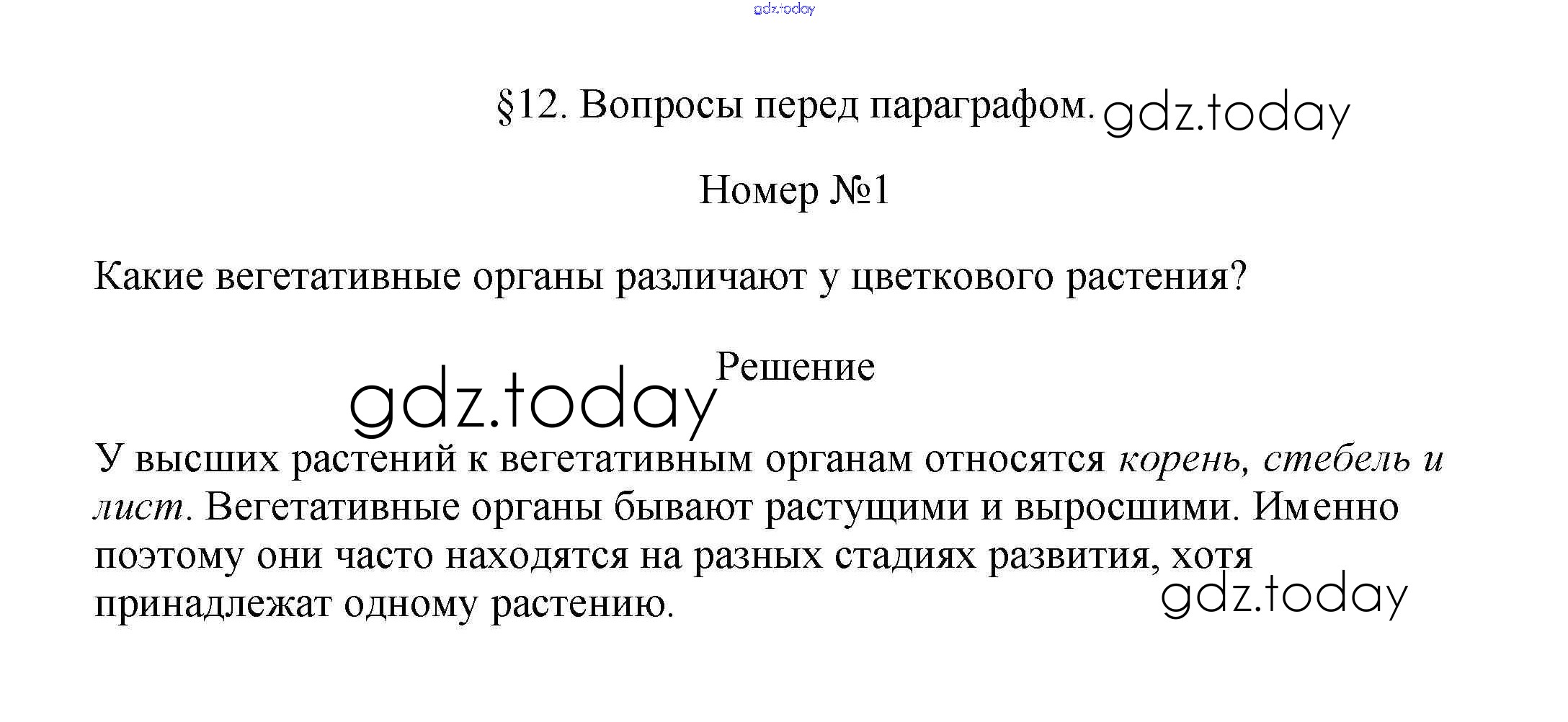 На страницах сайта gdz.today вы найдете учебный и вспомогательный материал, направленный на улучшения знаний школьной программы. ГДЗ - онлайн мир знаний Вопросы перед параграфом Решение к §12 1 Учебнику по Биологии для 6 класса Пасечник Линейный курс Дрофа 2020