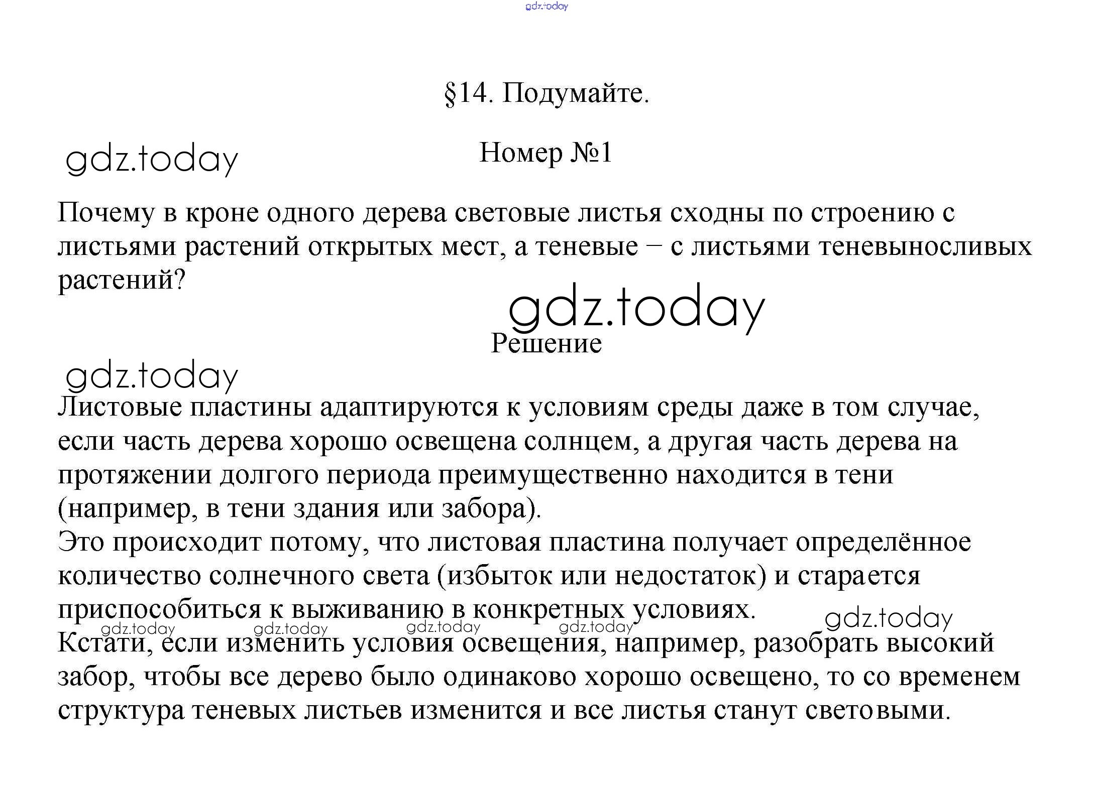 На страницах сайта gdz.today вы найдете учебный и вспомогательный материал, направленный на улучшения знаний школьной программы. ГДЗ - онлайн мир знаний Подумайте Решение к §14 1 Учебнику по Биологии для 6 класса Пасечник Линейный курс Дрофа 2020